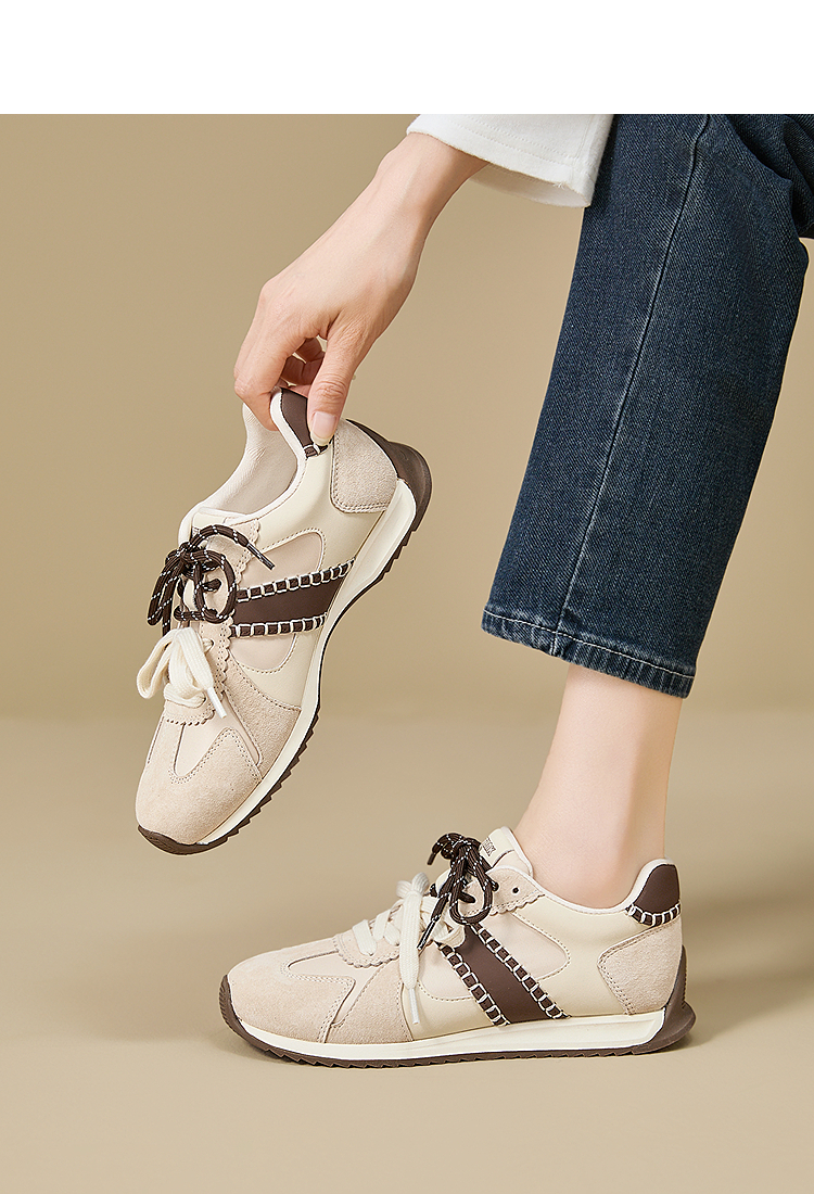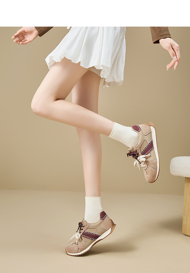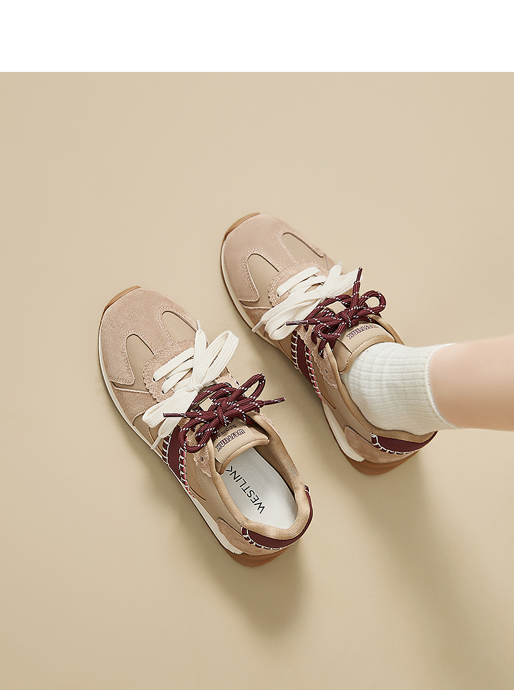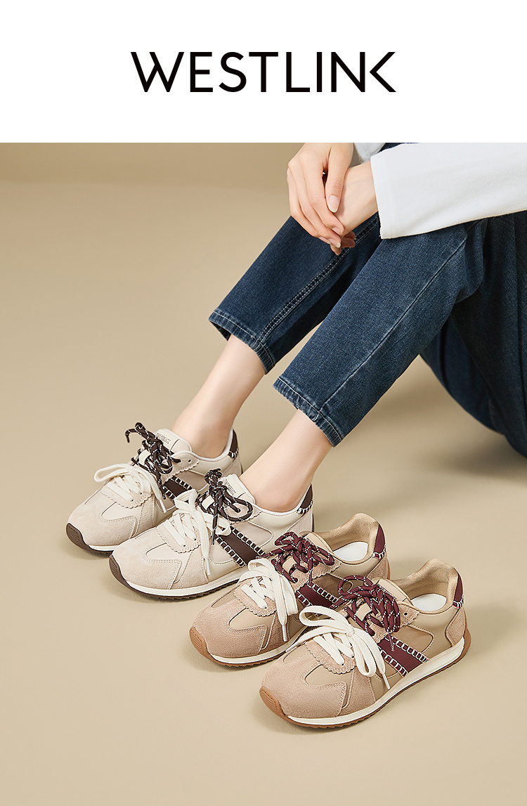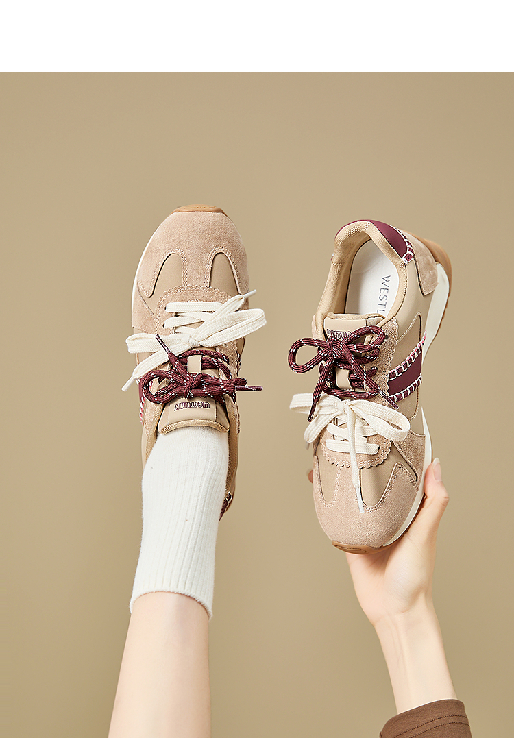 西遇复古轻便德训鞋女新款秋季百搭休闲鞋双鞋带软底运动鞋V1857122