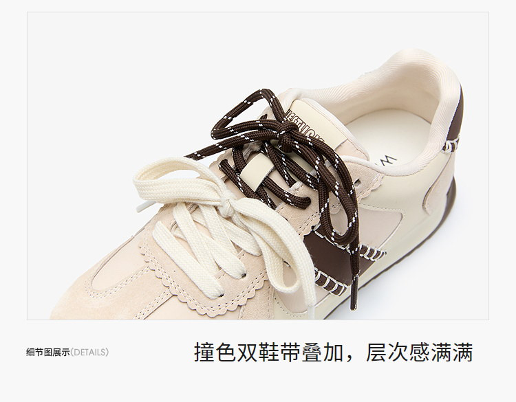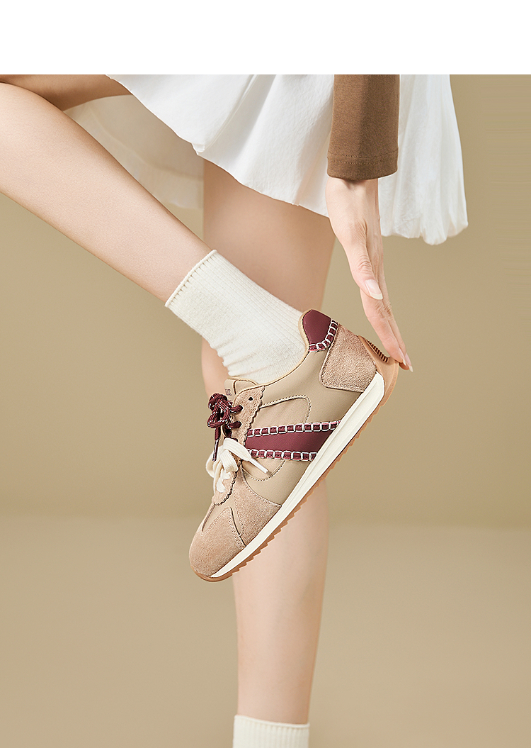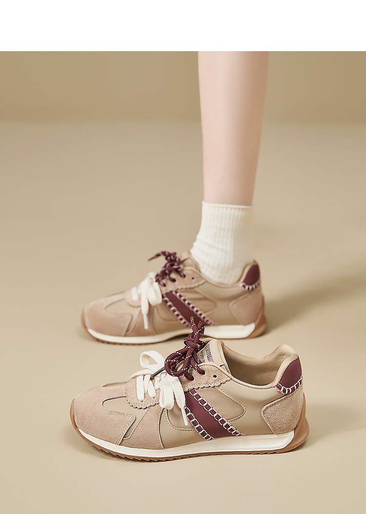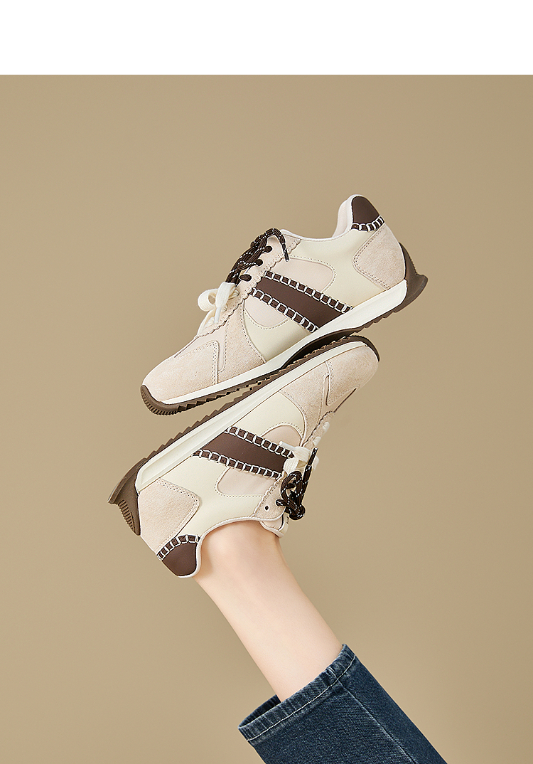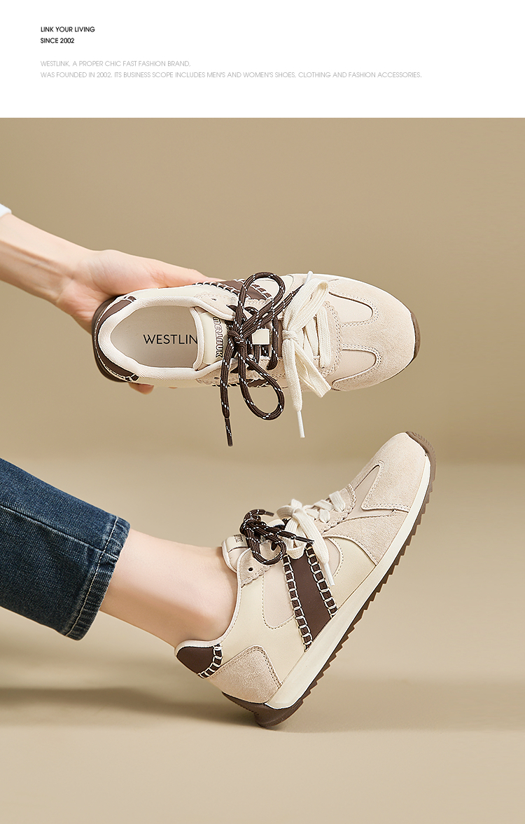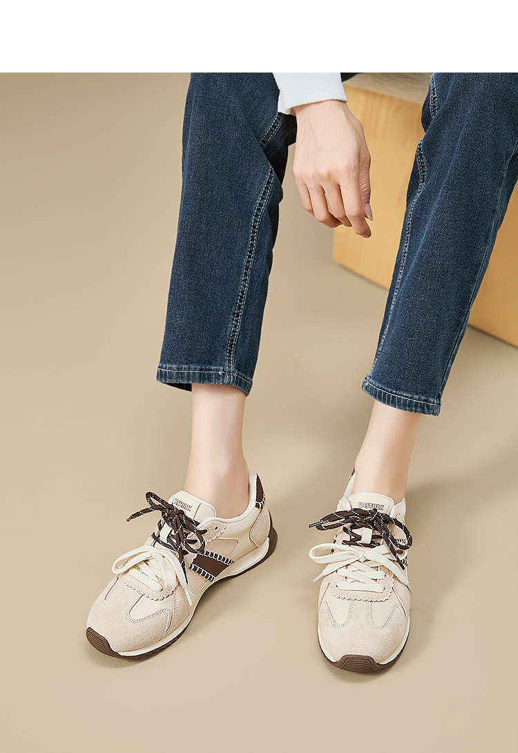 西遇复古轻便德训鞋女新款秋季百搭休闲鞋双鞋带软底运动鞋V1857122