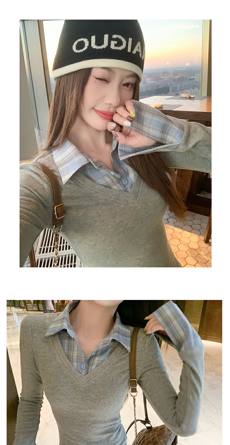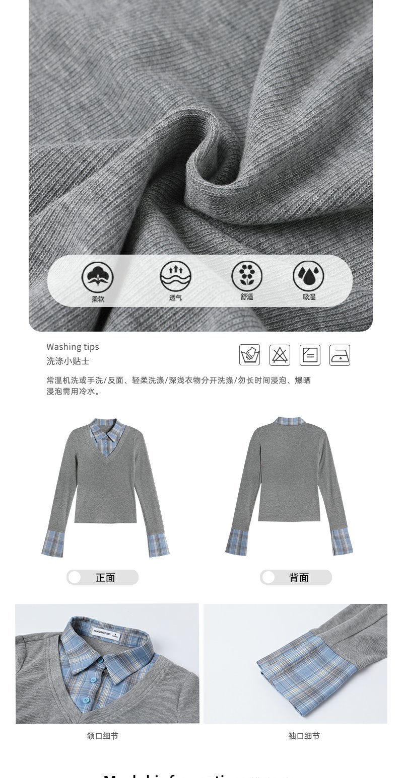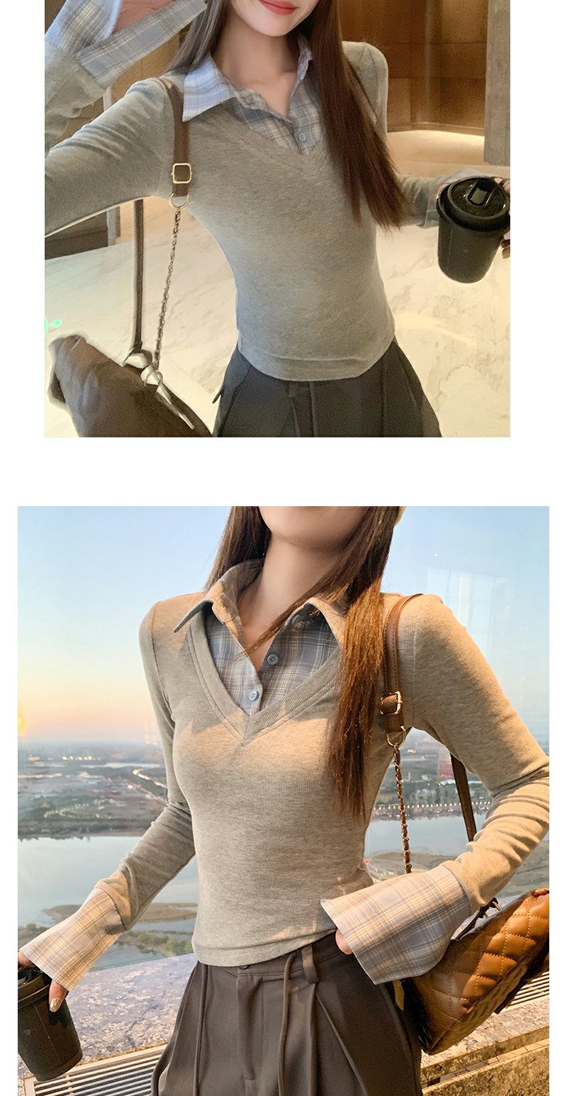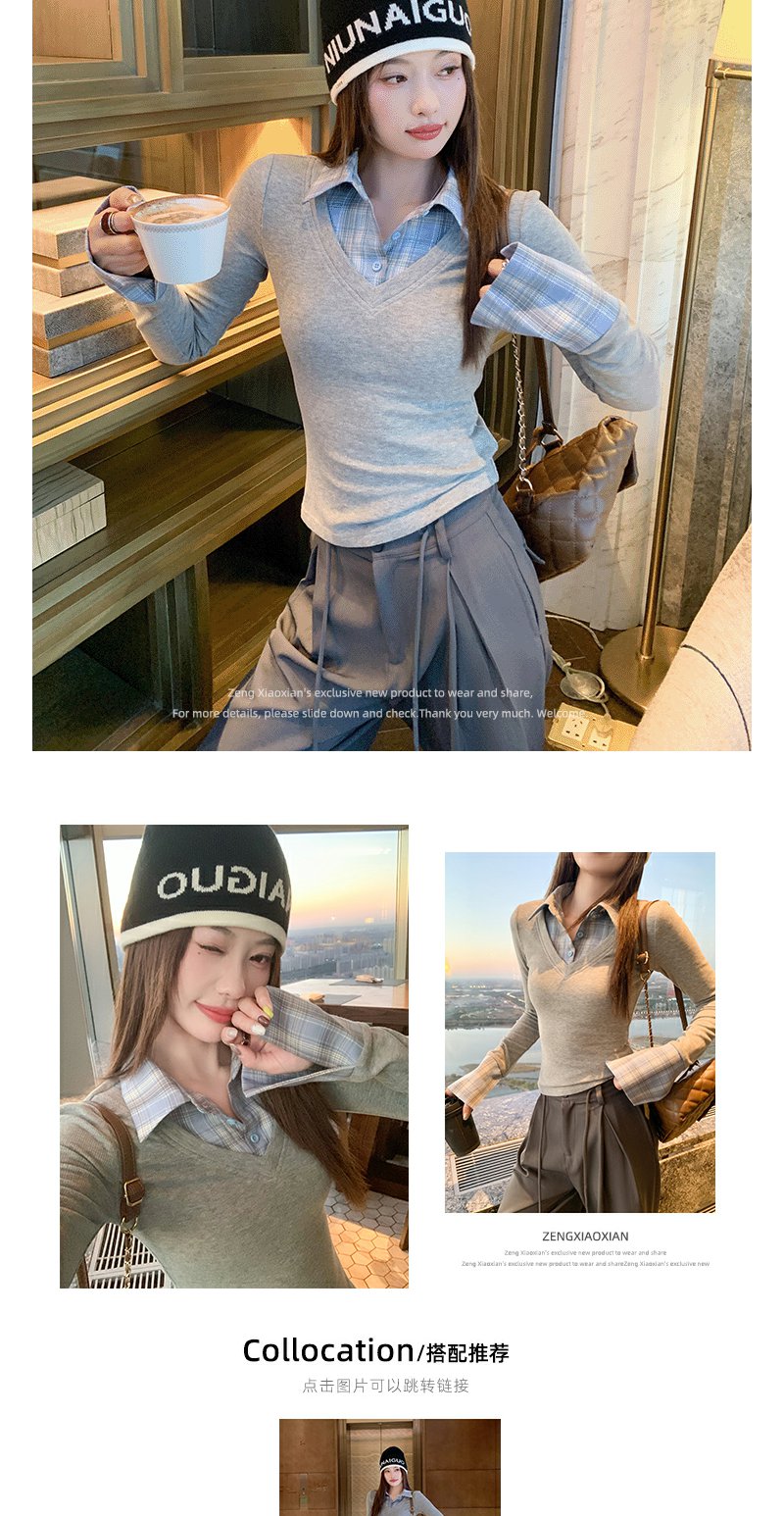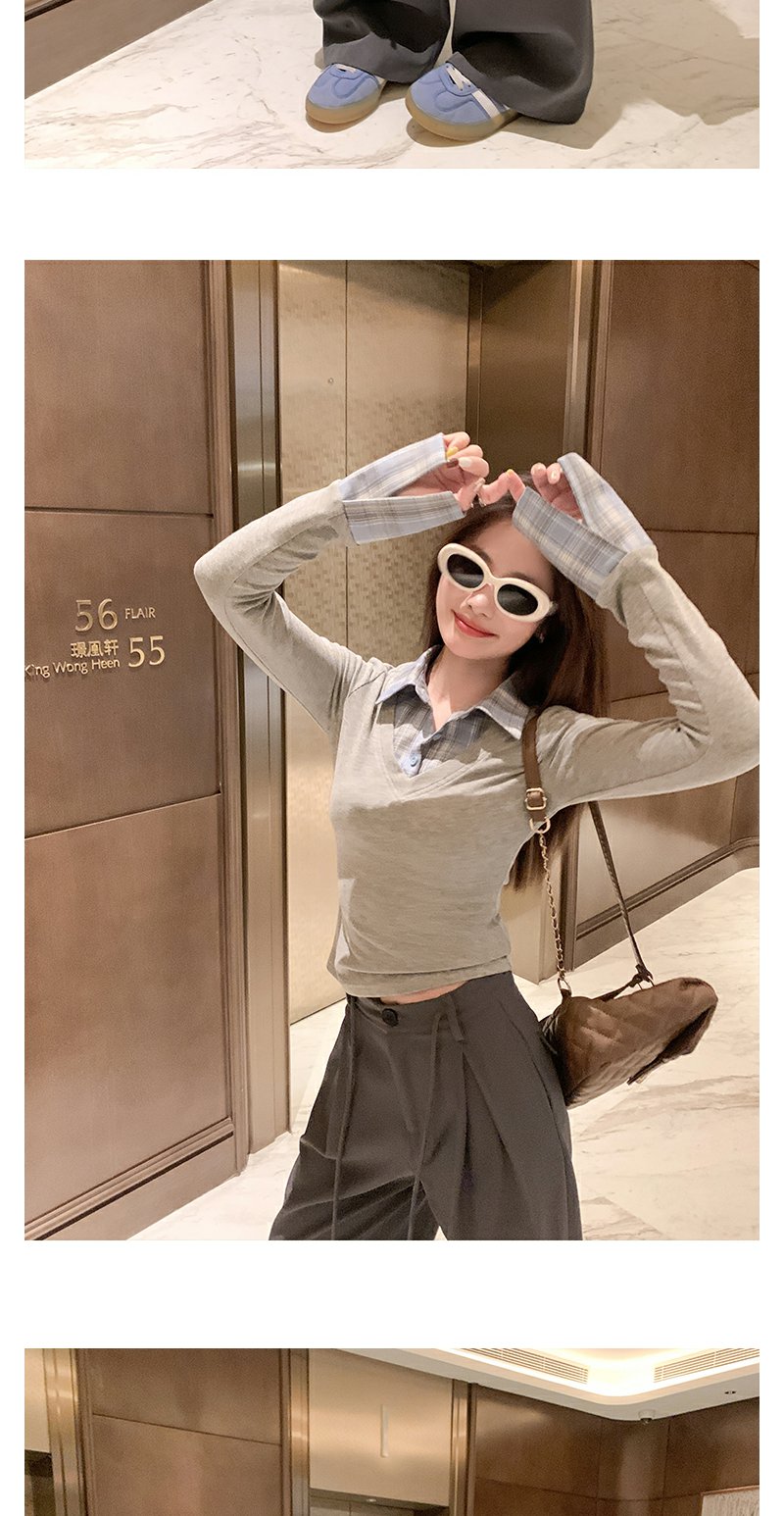 <曾小咸推荐> 现货秒杀!微信超特价!灰色格子翻领t恤假两件 日常159.99 立减90 秒杀69.99!