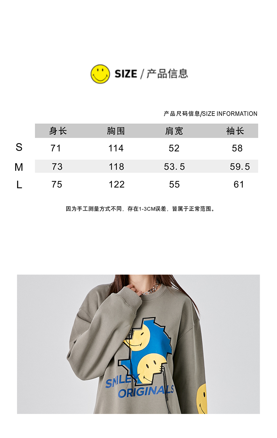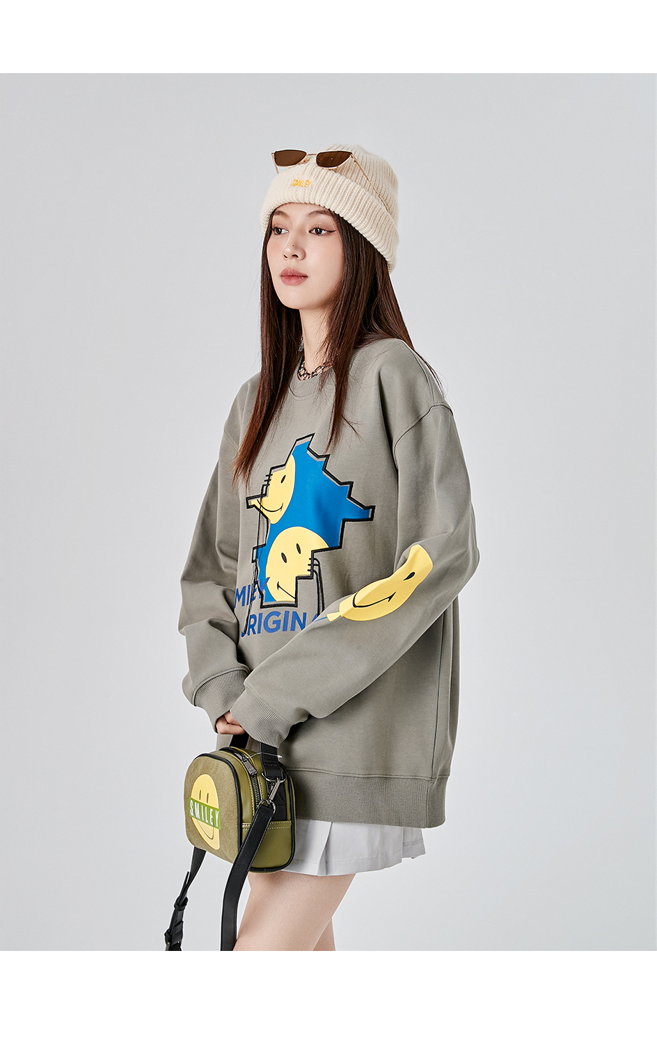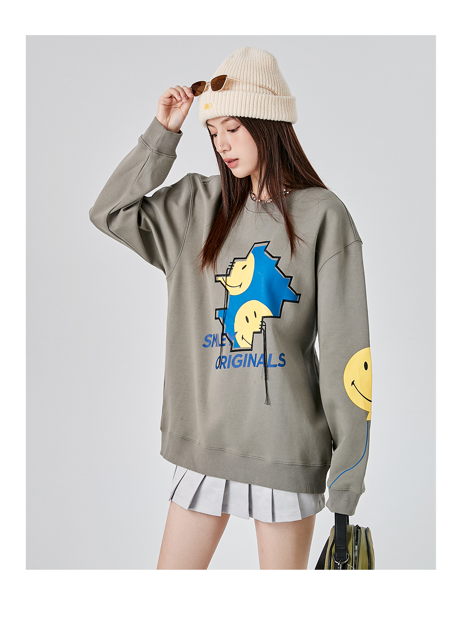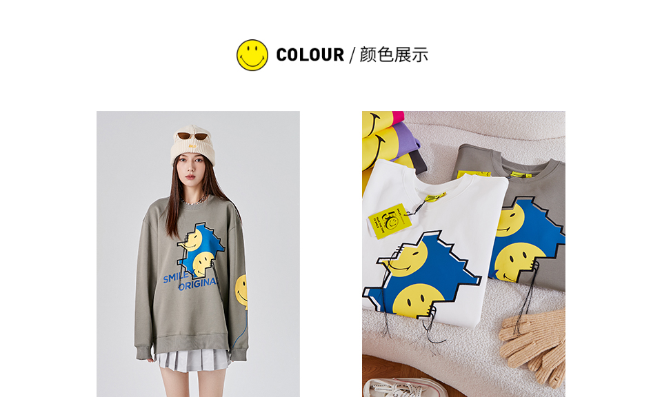 【品名】:印花笑脸流苏毛巾刺绣圆领卫衣