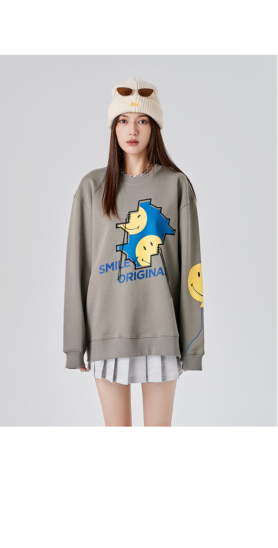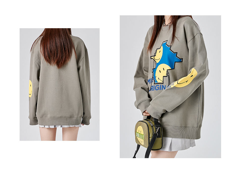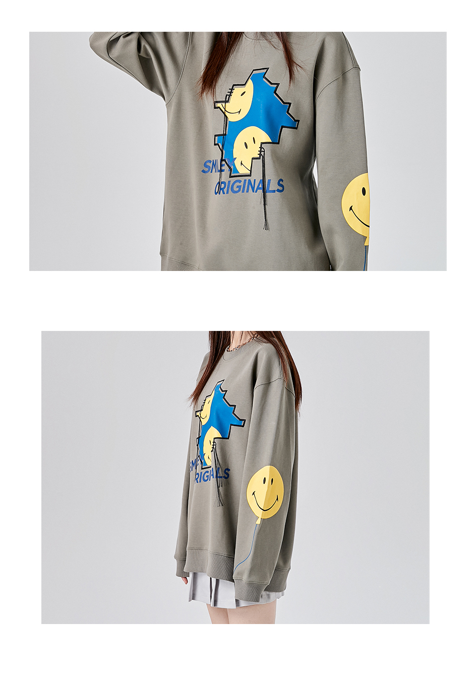 【品名】:印花笑脸流苏毛巾刺绣圆领卫衣