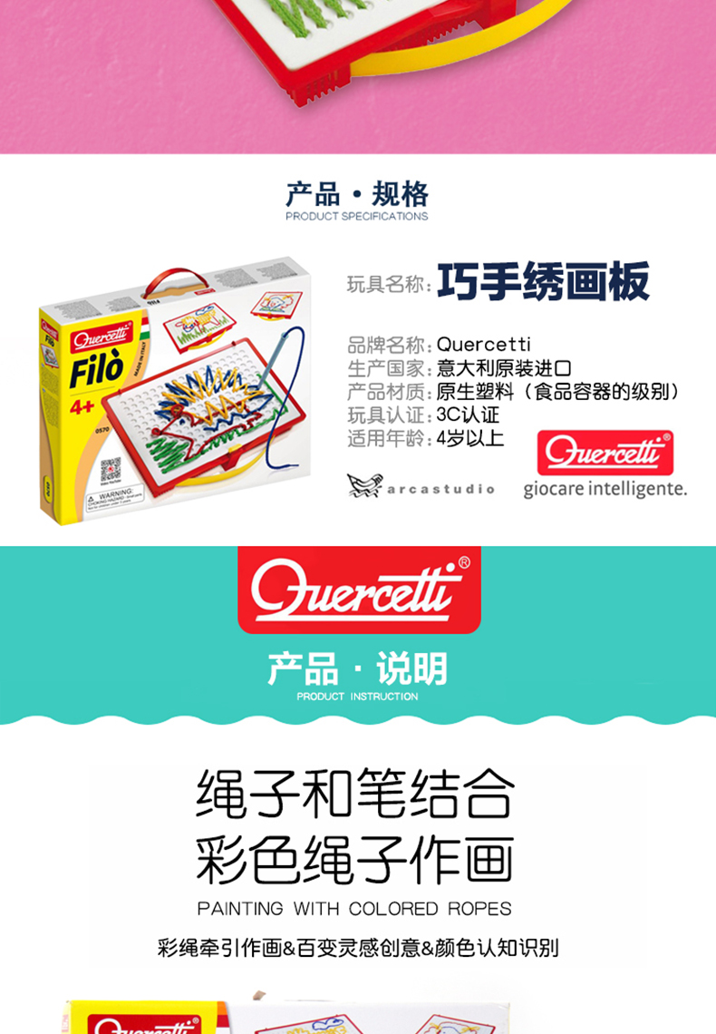 Quercetti启迪 绘画系列 巧巧绣画板 Q0570 3+岁 意大利