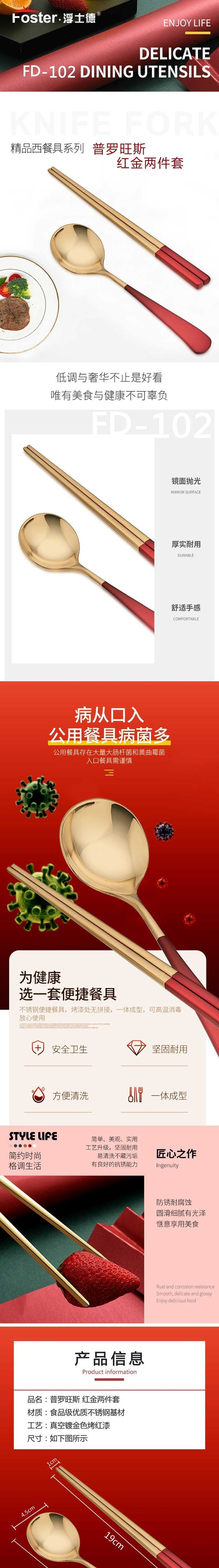 浮士德 普罗旺斯红金2件套 FD-102 炒锅煎锅不粘套装