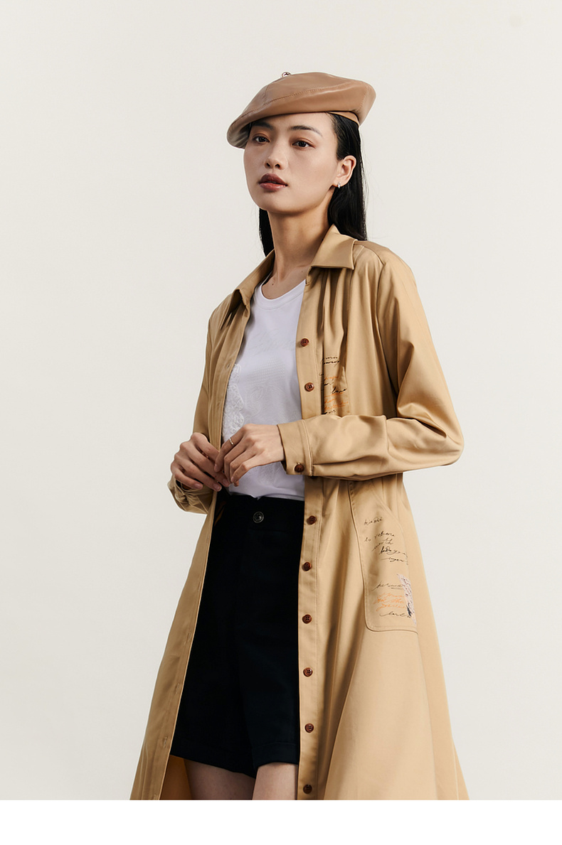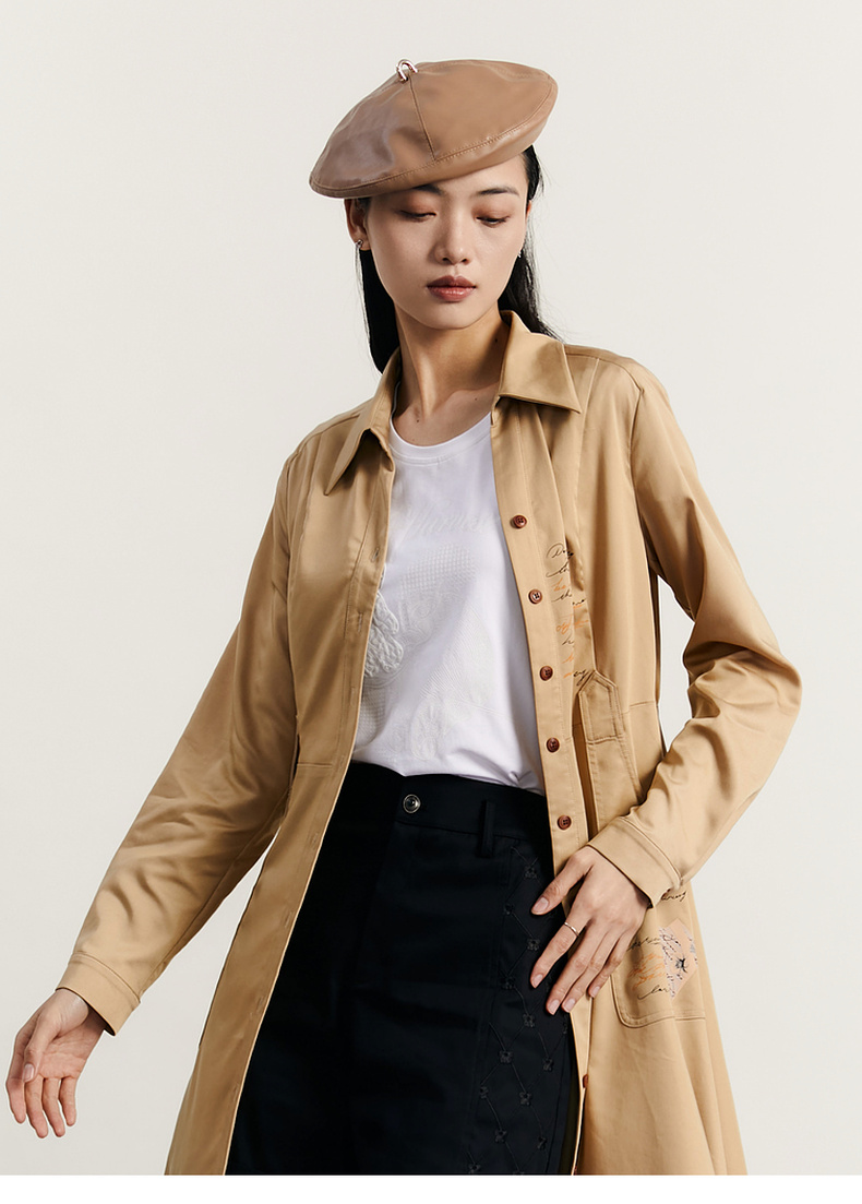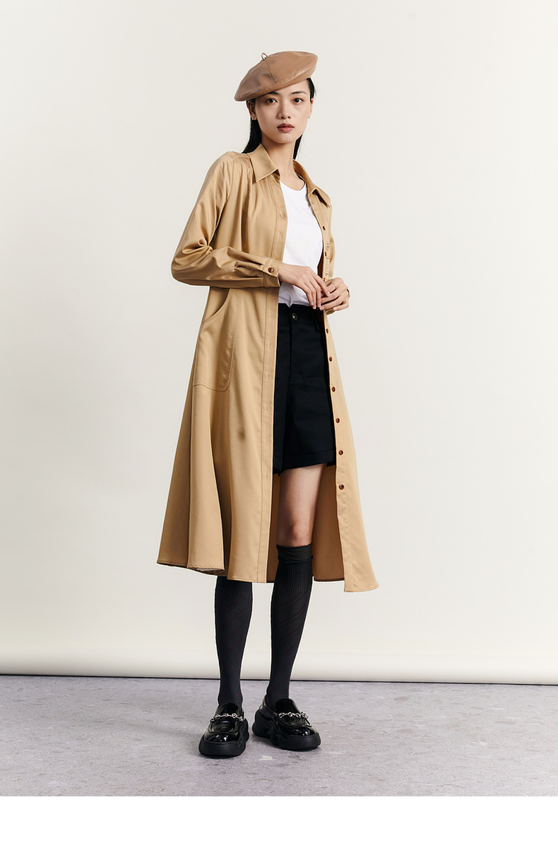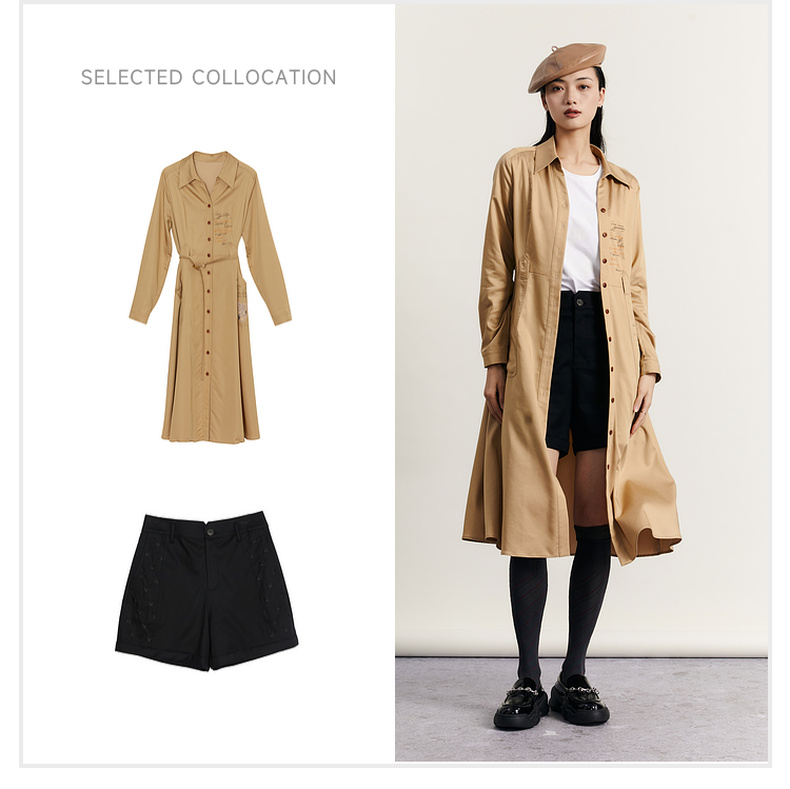 谜底通勤连衣裙2023秋季新款复古收腰中长裙长袖配腰带233ML1145