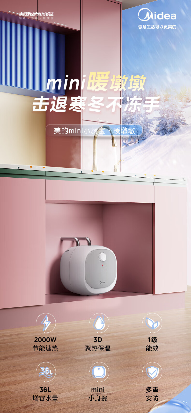 Midea美的/F6.6-20A3(ES) 6.6升迷你上出水小厨宝IPX4385*665*360mm