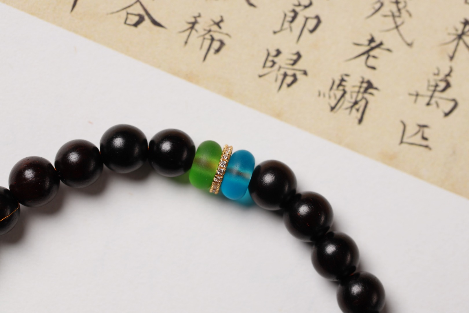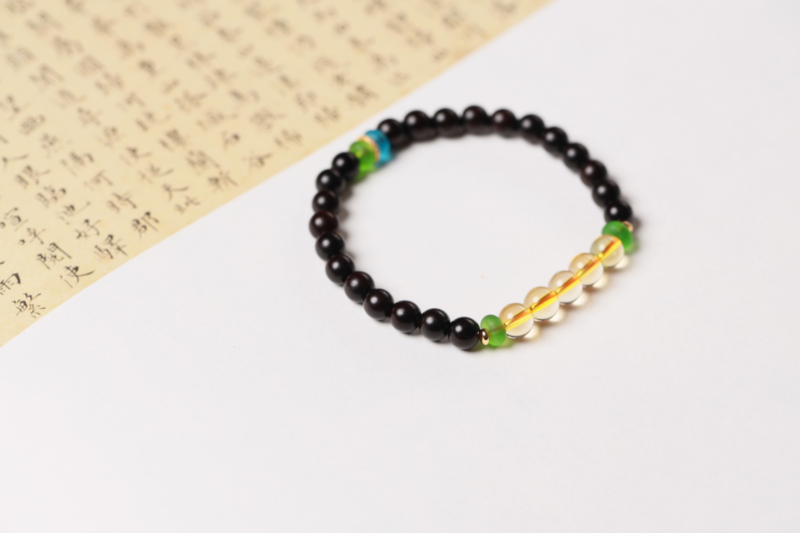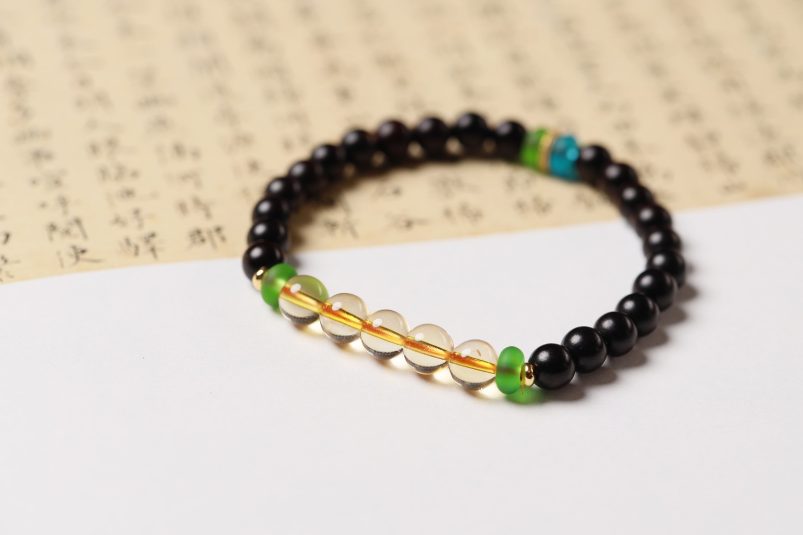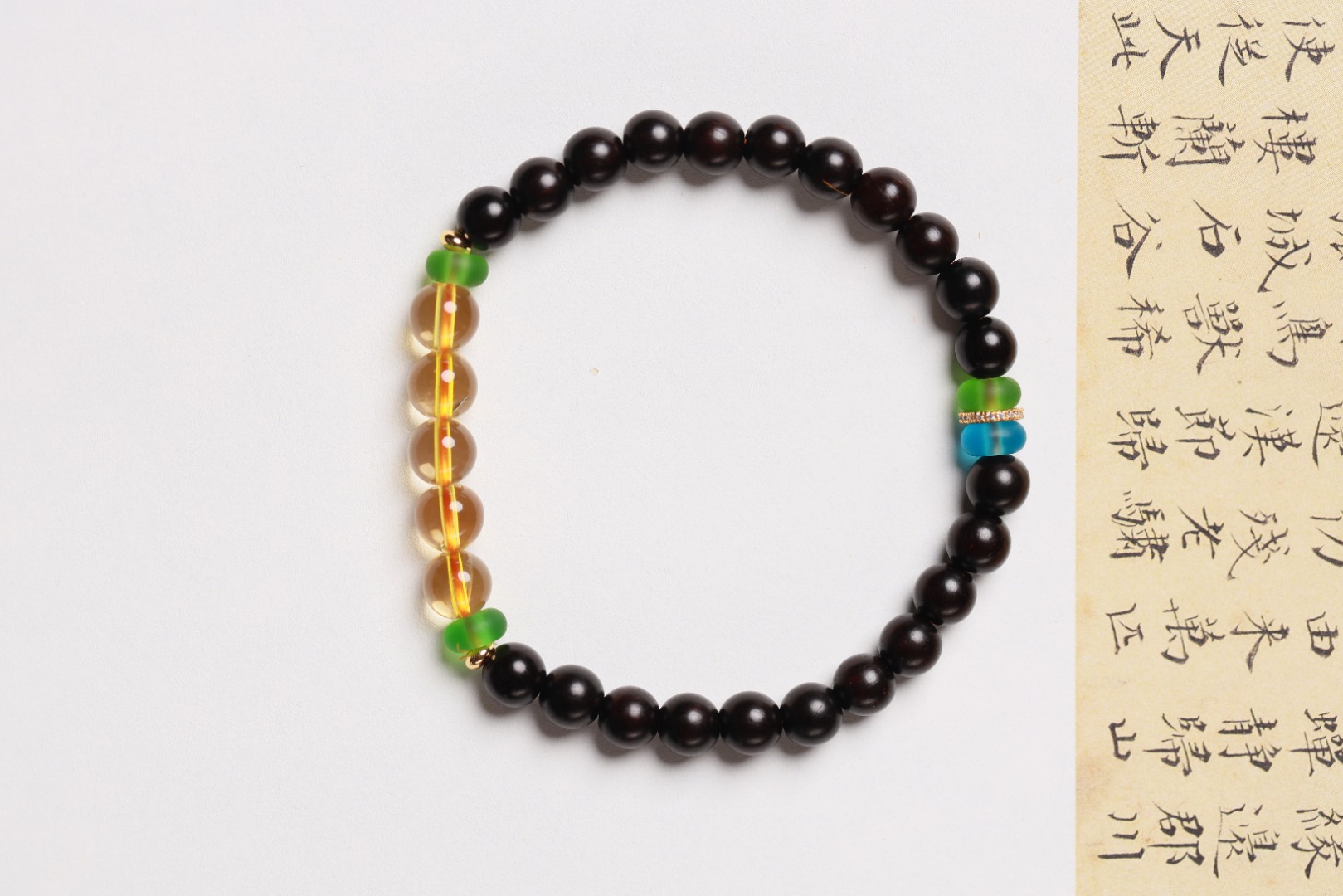 晶莹剔透的黄水晶搭配“帝王木”小叶紫檀精致而高贵