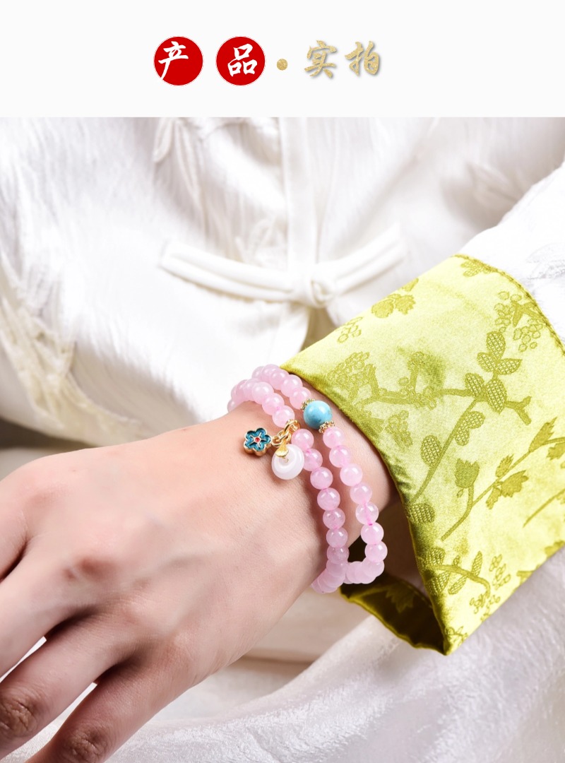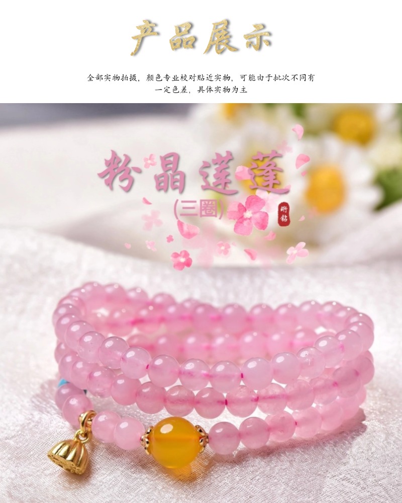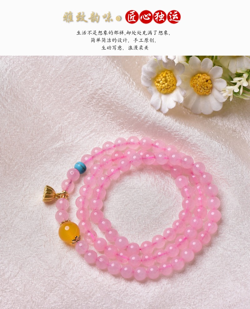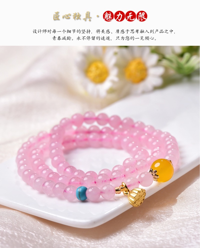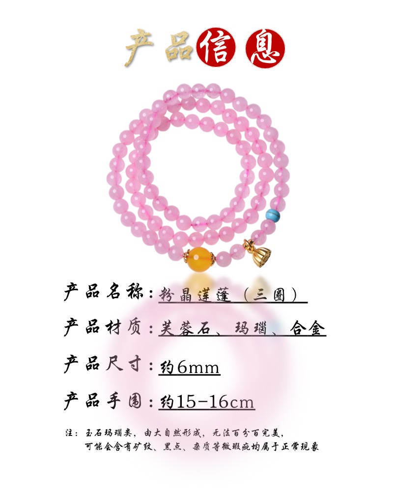 珩钻 天然芙蓉石粉晶莲蓬多圈手串6mm 天然粉水晶手链粉色芙蓉石玛瑙石转运珠新中式手链带证书