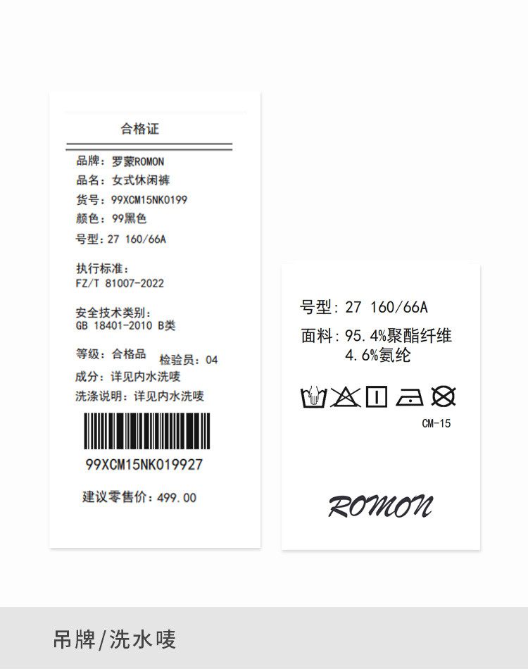 【面料】聚酯纤维95.4%+聚氨酯弹性纤维(氨纶)4.6%