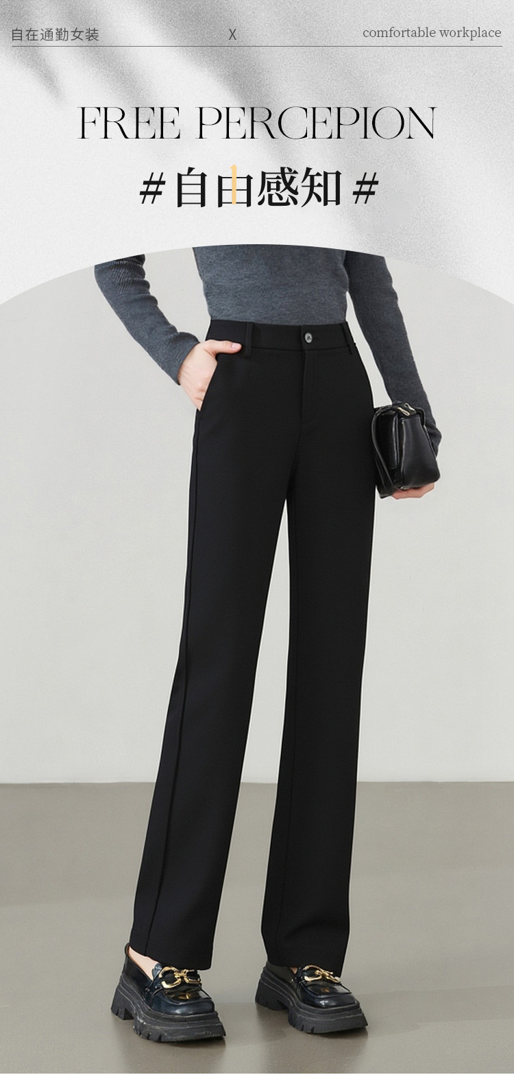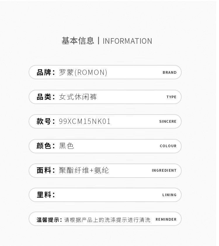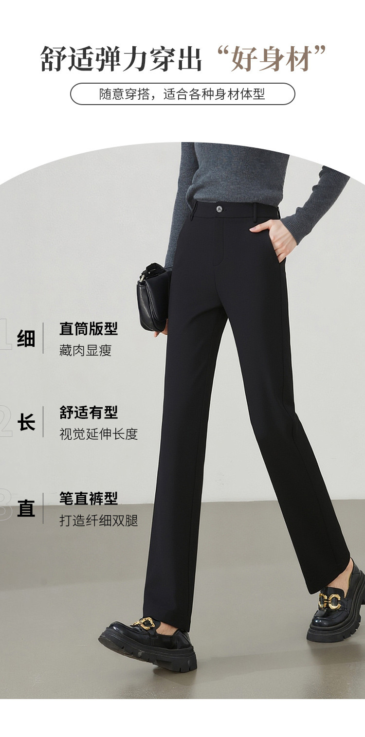 【易打理】罗蒙女士休闲裤简约休闲时尚有型纯色百搭长裤子女
