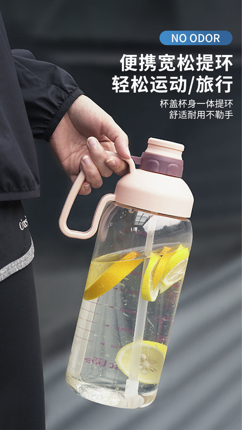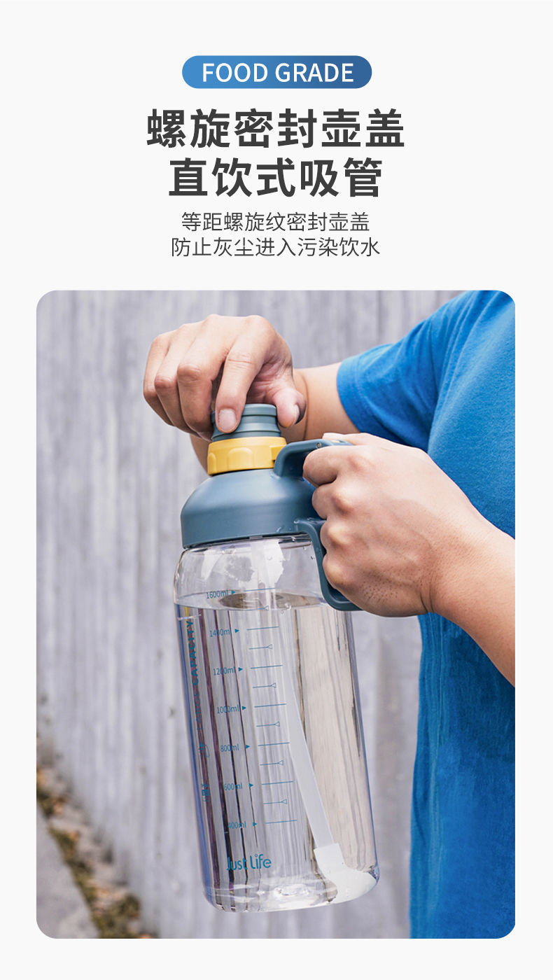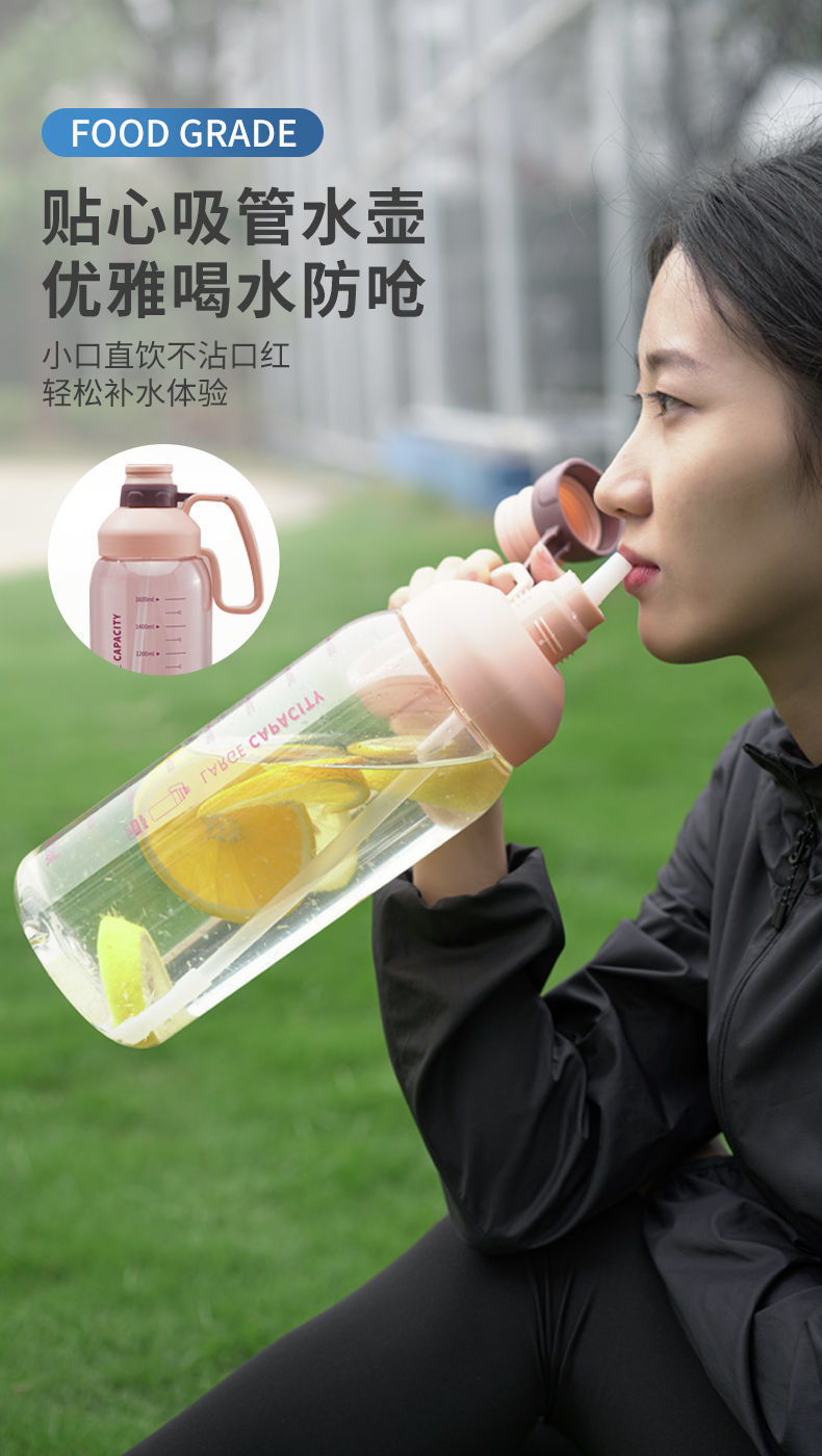 【大容量水瓶】吸管水杯女运动便携水壶居家日用餐饮用具防摔韩式健身简约杯子1800ml