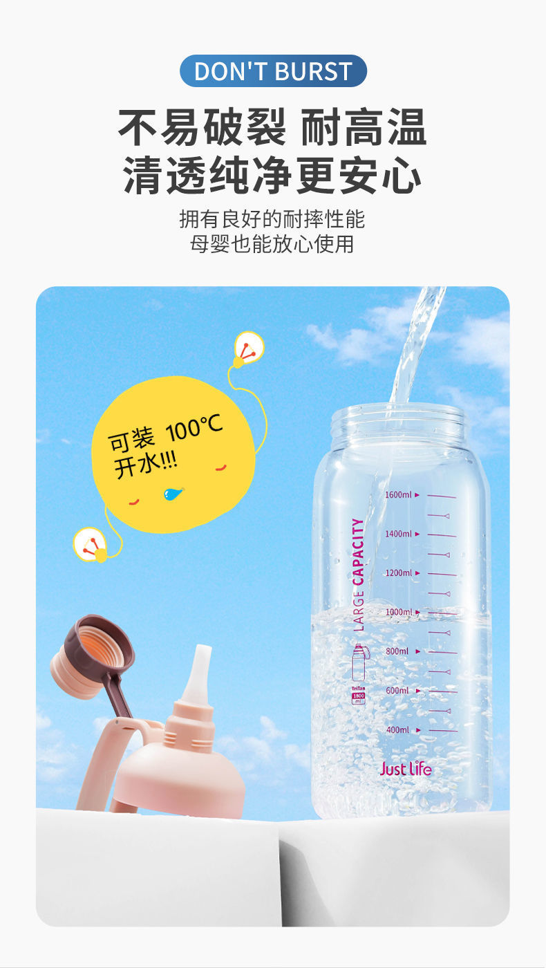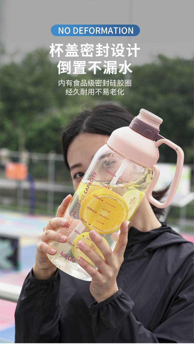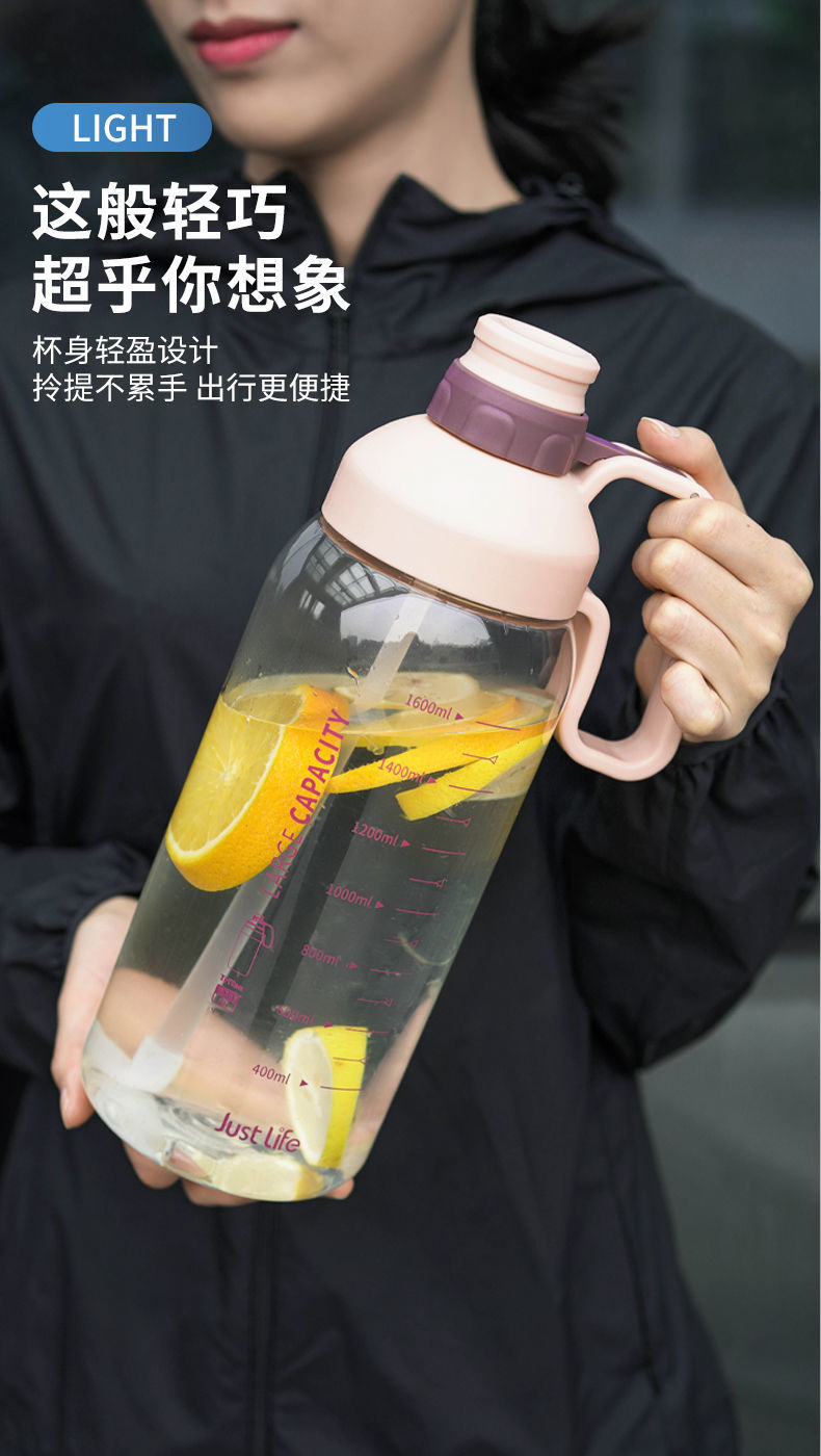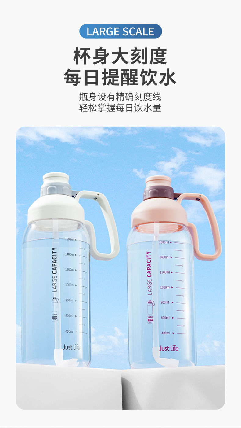 【大容量水瓶】吸管水杯女运动便携水壶居家日用餐饮用具防摔韩式健身简约杯子1800ml