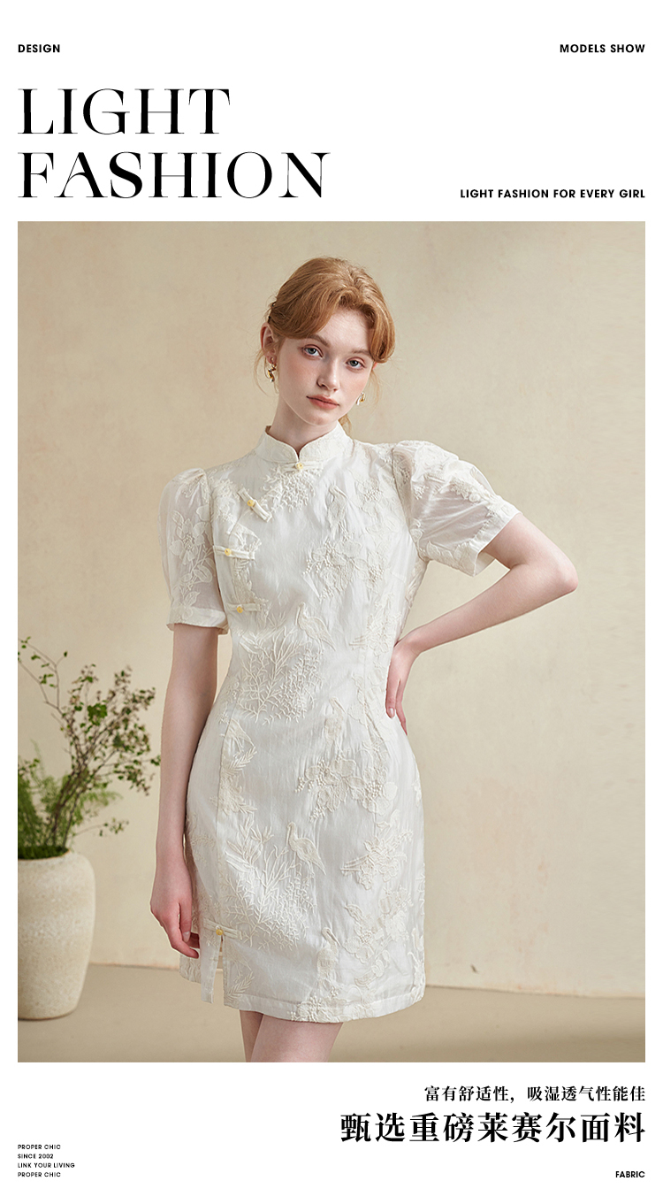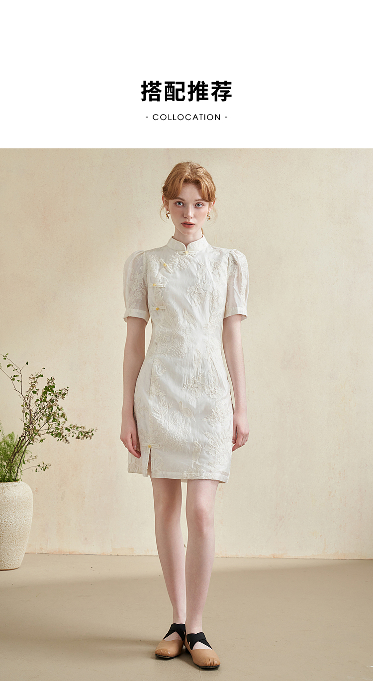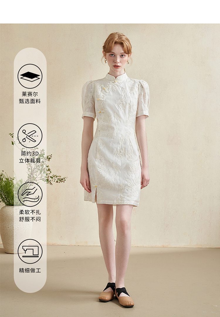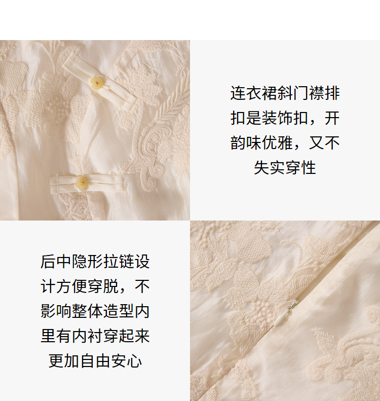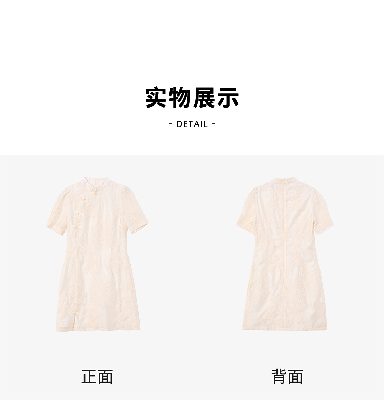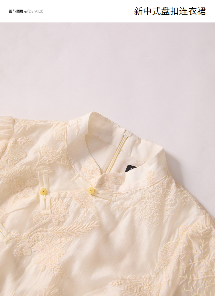 西遇新中式盘扣短袖连衣裙女夏季新款百搭随性优雅修身杏色裙D2141799
