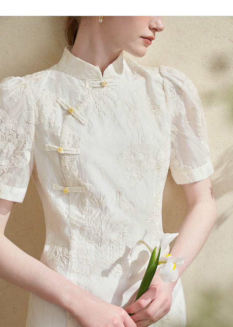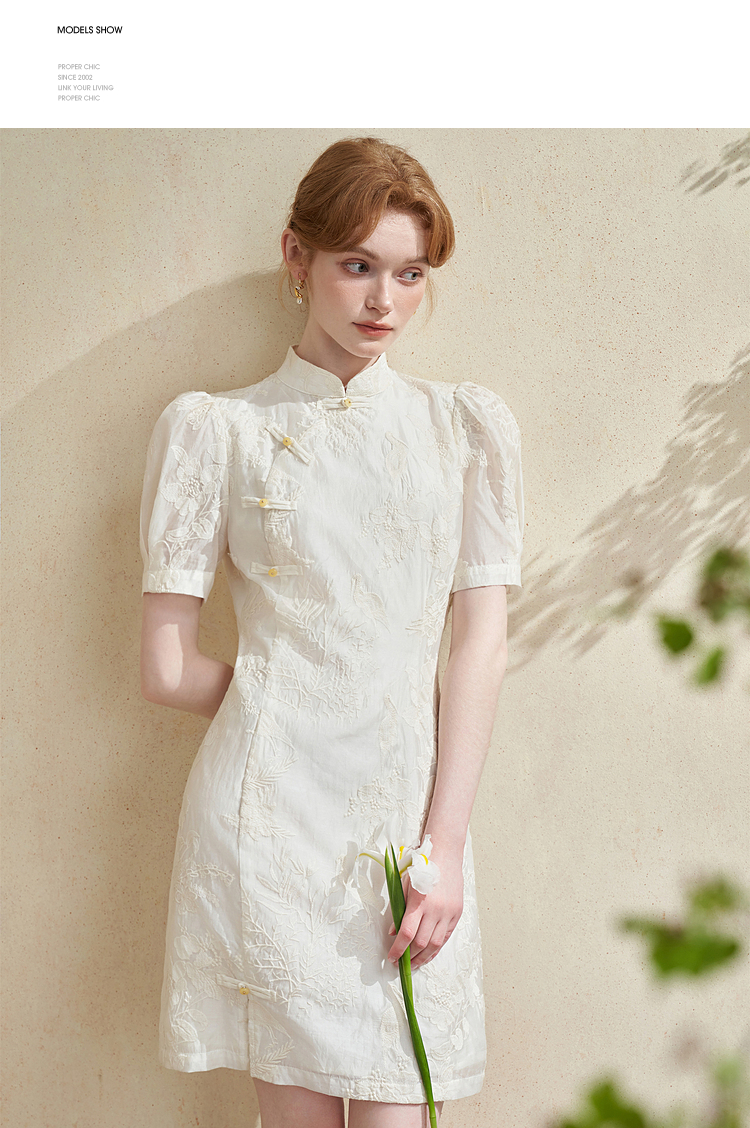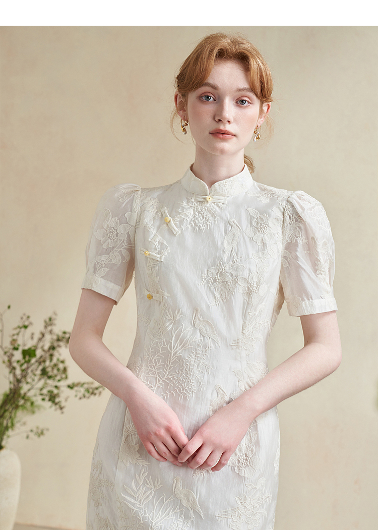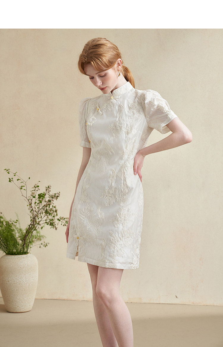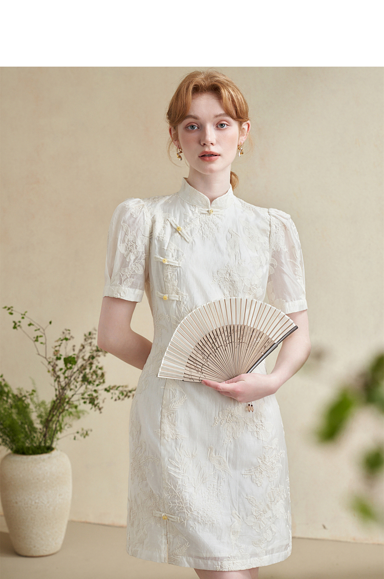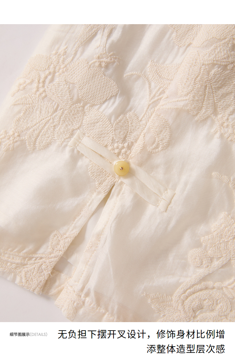 西遇新中式盘扣短袖连衣裙女夏季新款百搭随性优雅修身杏色裙D2141799