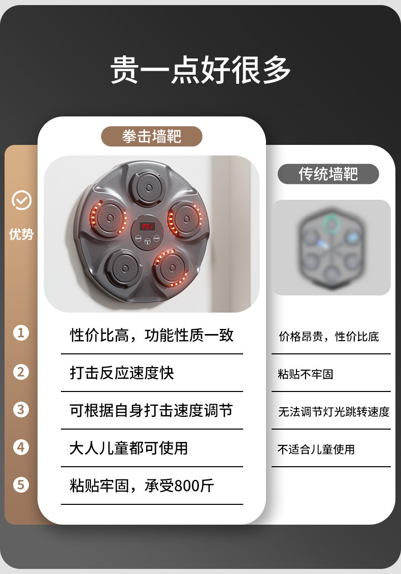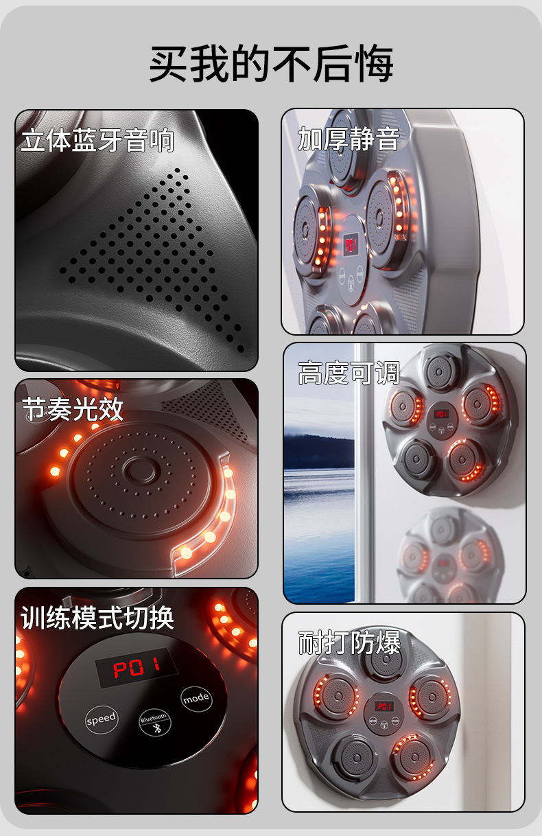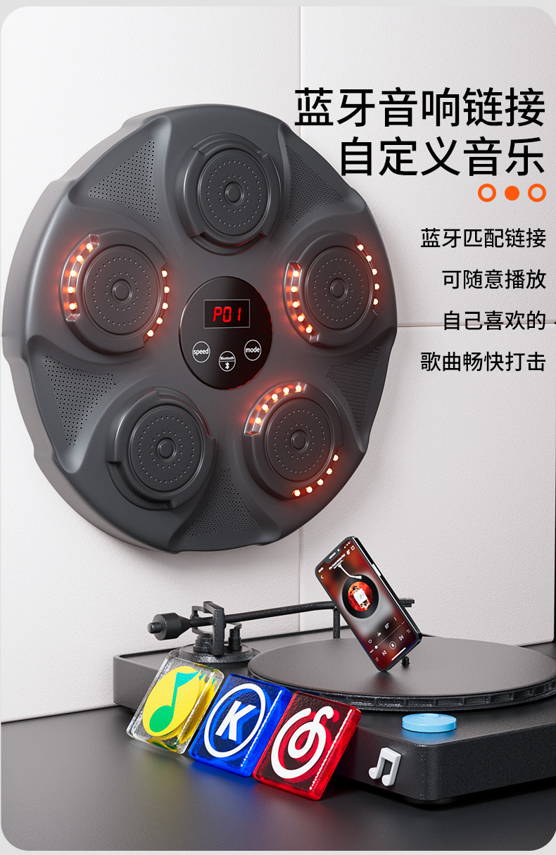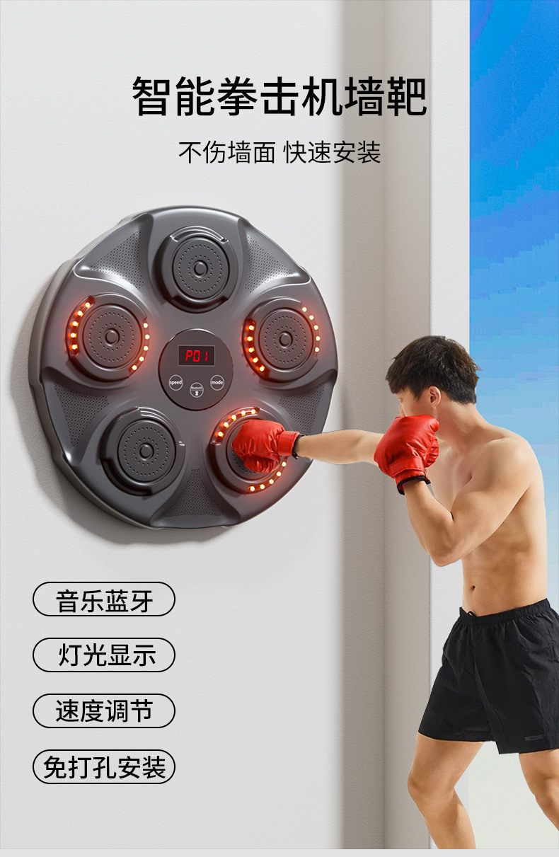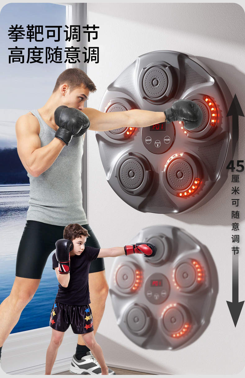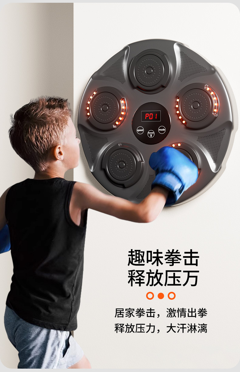 【舞动拳击 一触即发】音乐响起,身体自由舞动。智能音乐拳击机,挑战自我极限;多档变速、可根据自身打击速度调节,提升反应力和专注力;立体蓝牙链接,无限畅享;免打孔安装,方便快捷;适用于成人和儿童!