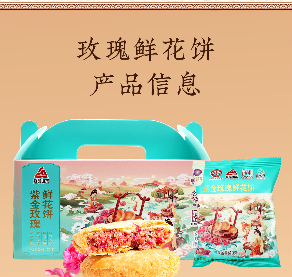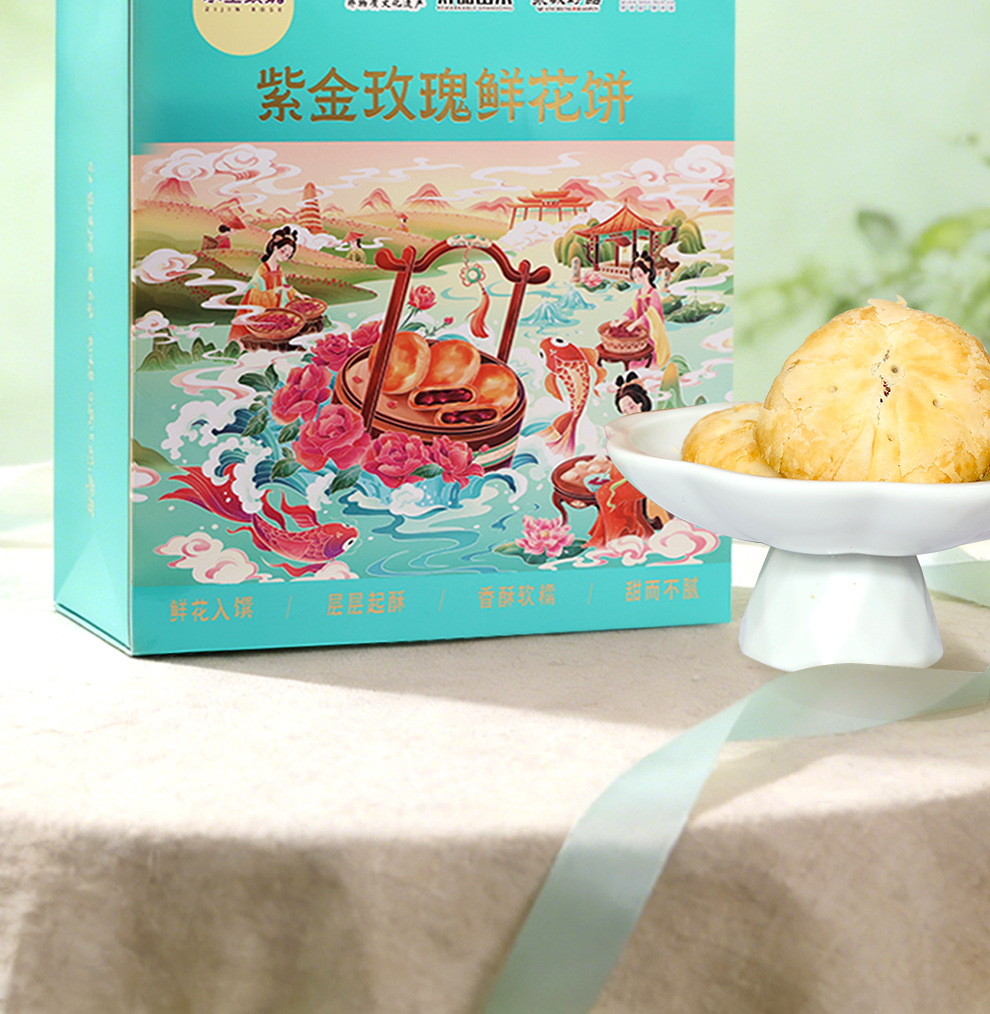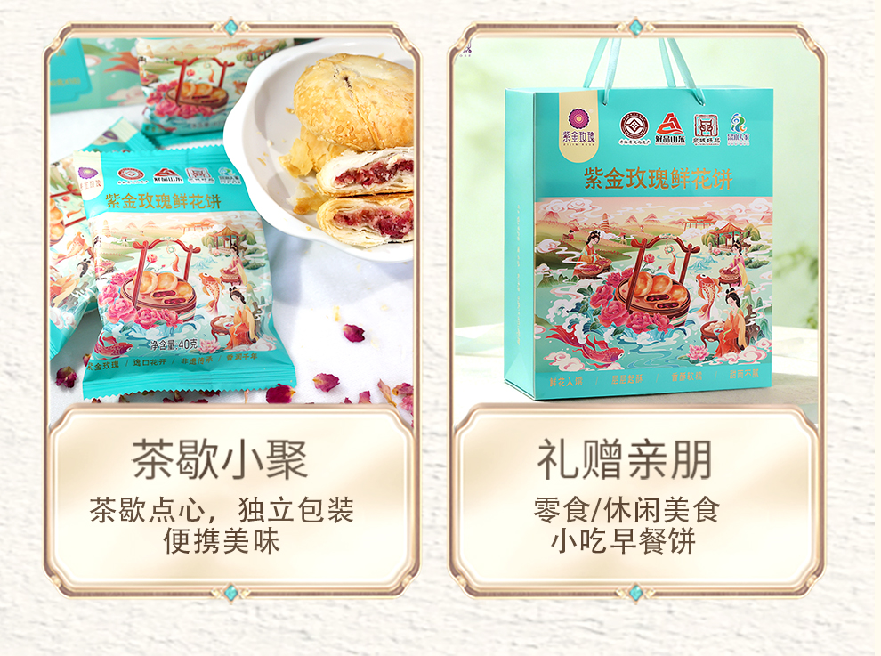紫金玫瑰鲜花饼40gX8枚*2盒国风礼袋装