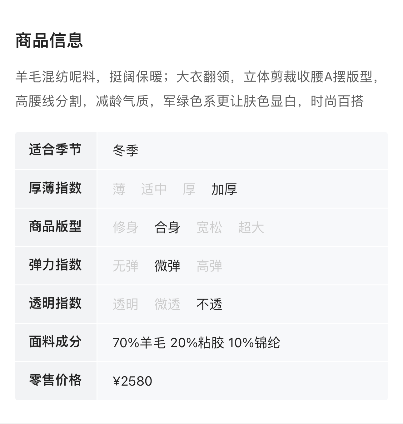 DAMO WANG/王大墨 收腰A摆毛呢大衣 14075