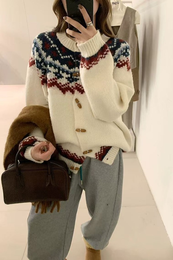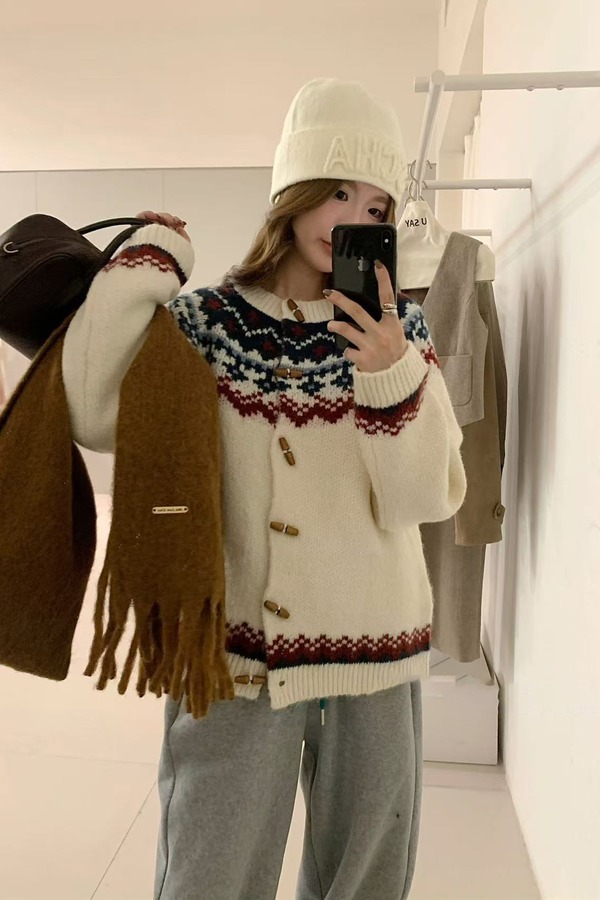 Stay2Weeks 费尔岛提花撞色针织开衫外套 21887