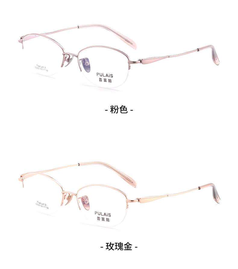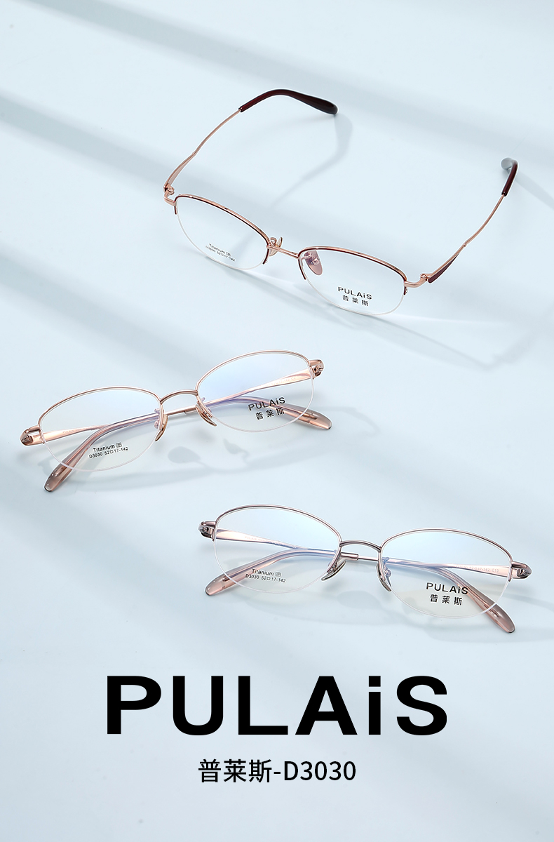 普莱斯光学镜框D3030 经典半框 半钛材质 舒适鼻托 稳固桩头 复古休闲 三色可选