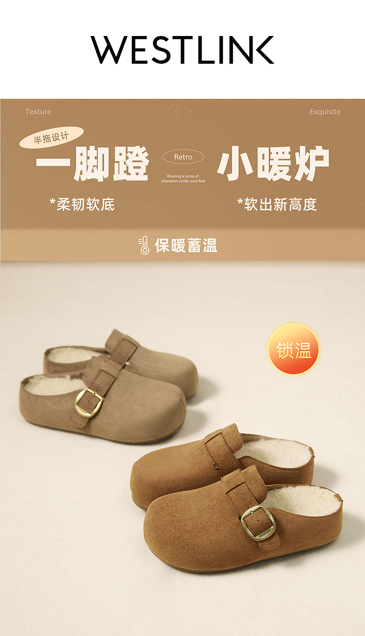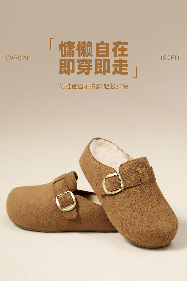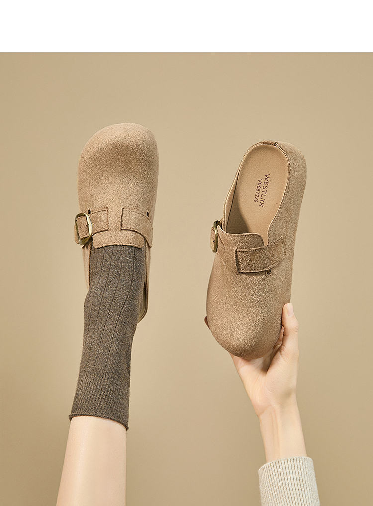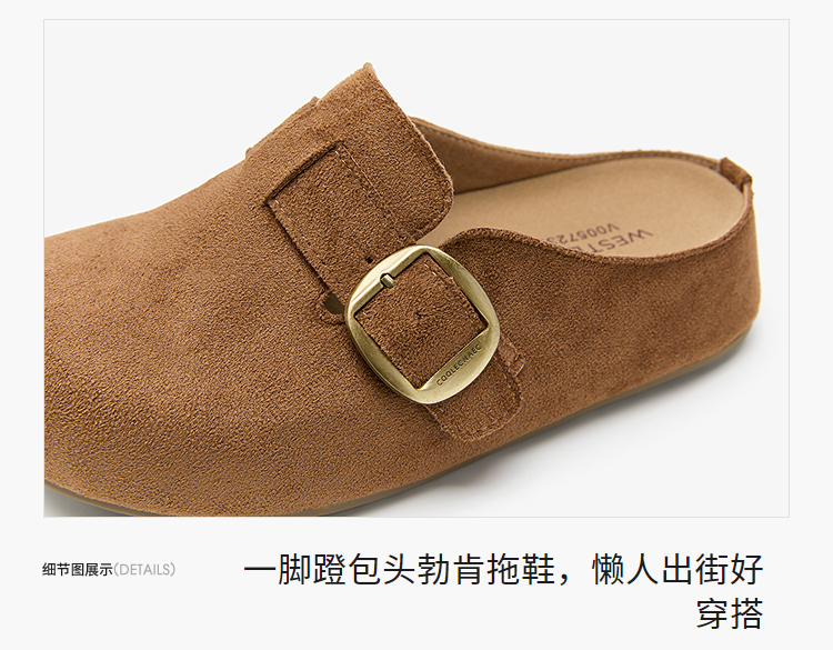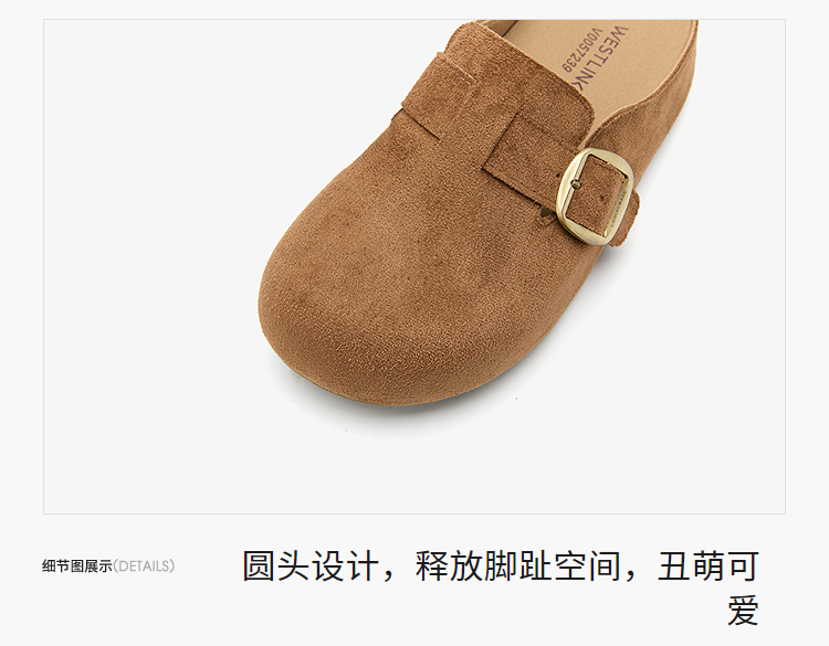 西遇勃肯鞋半拖女新款秋冬百搭圆头一脚蹬包头拖鞋博肯厚底鞋V0057239/V0057240