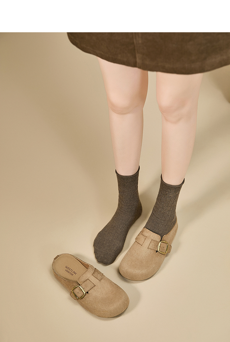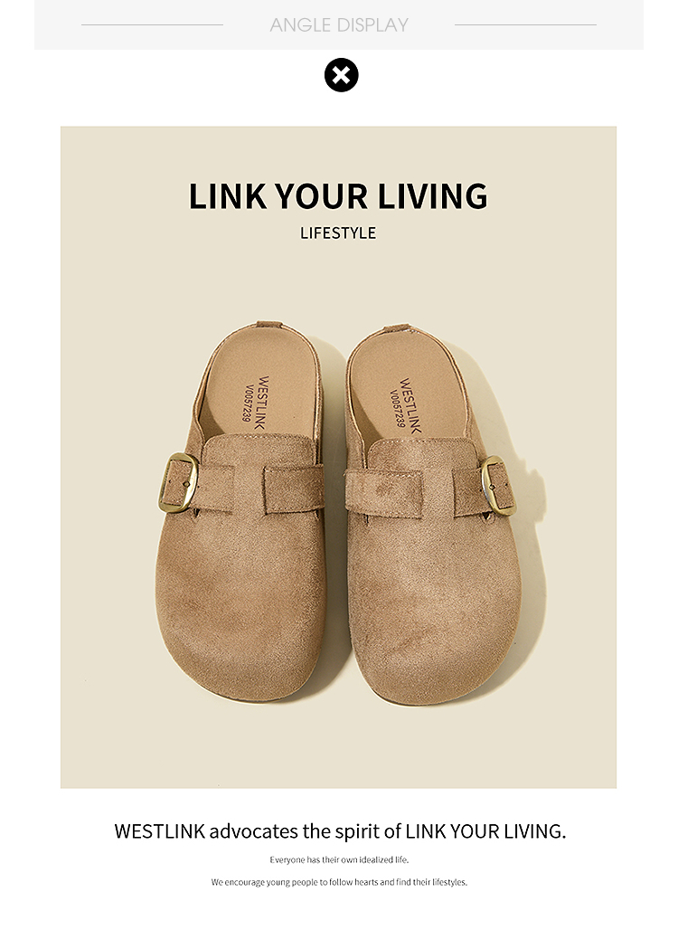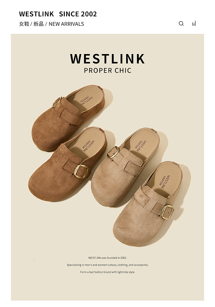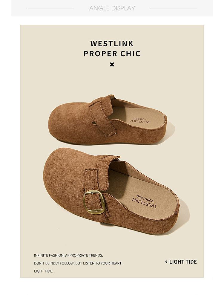 西遇勃肯鞋半拖女新款秋冬百搭圆头一脚蹬包头拖鞋博肯厚底鞋V0057239/V0057240