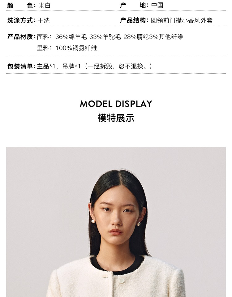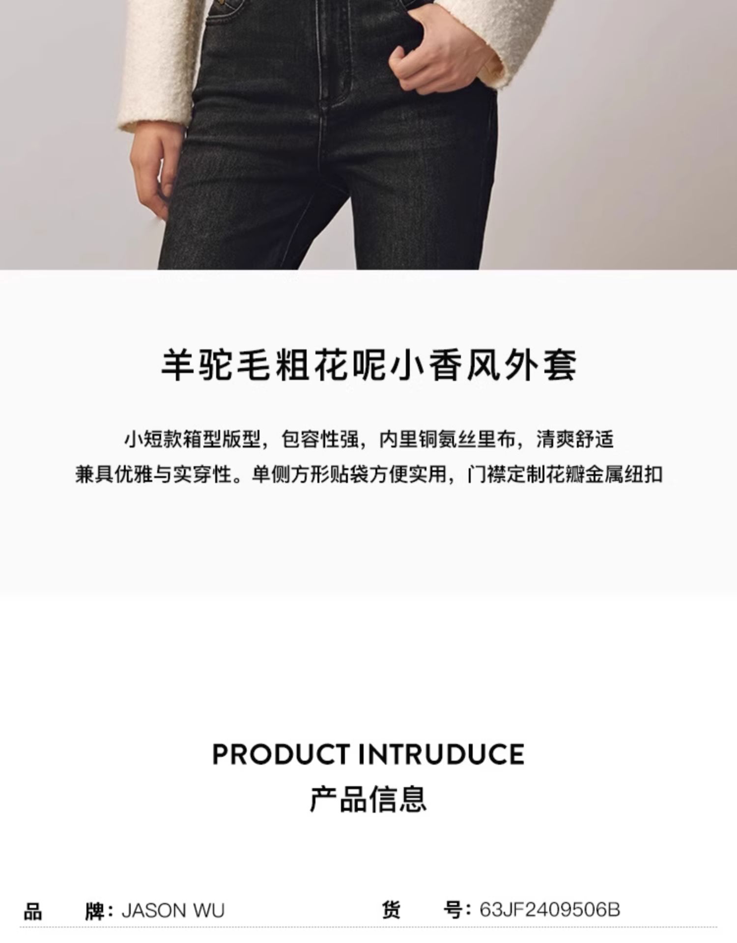 【JASON WU】秋冬新款羊驼毛粗花呢小香风上衣外套女