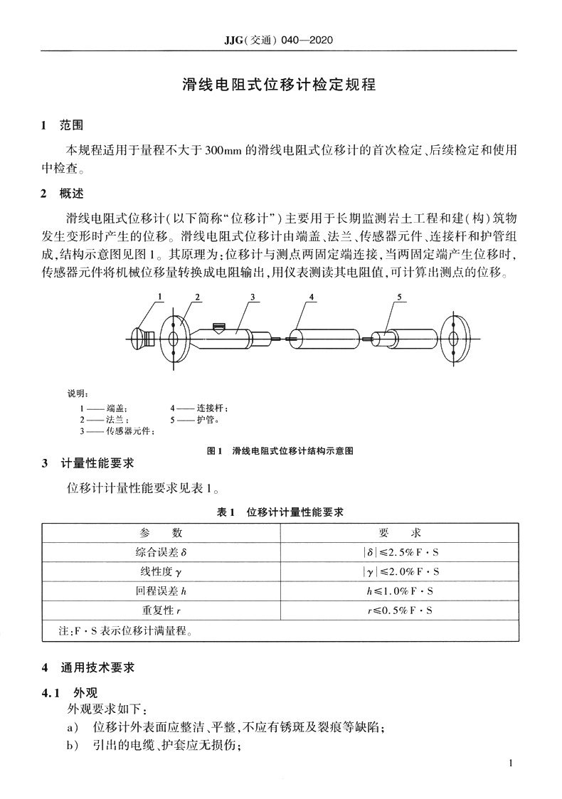 | 滑线电阻式位移计 JJG(交通)040—2020 | ||