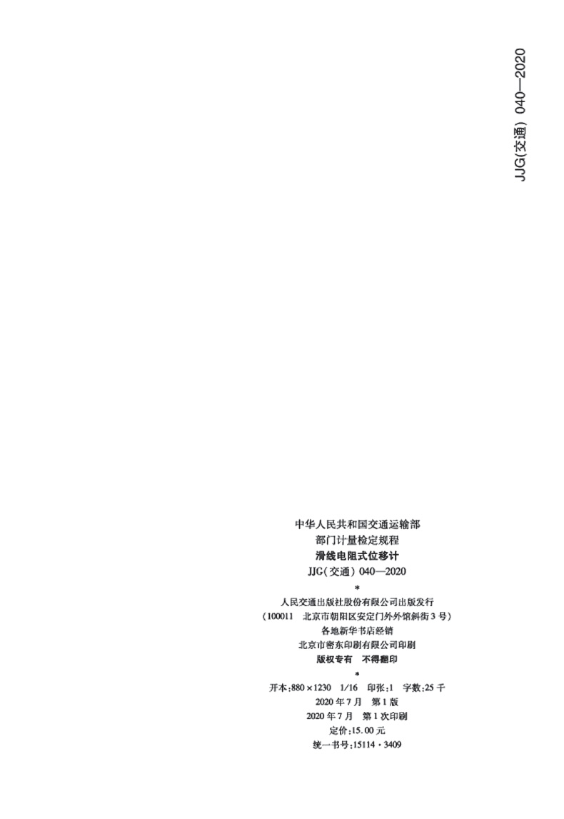 书名:滑线电阻式位移计 JJG(交通)040—2020