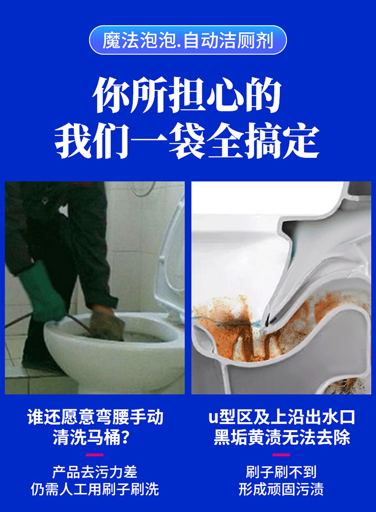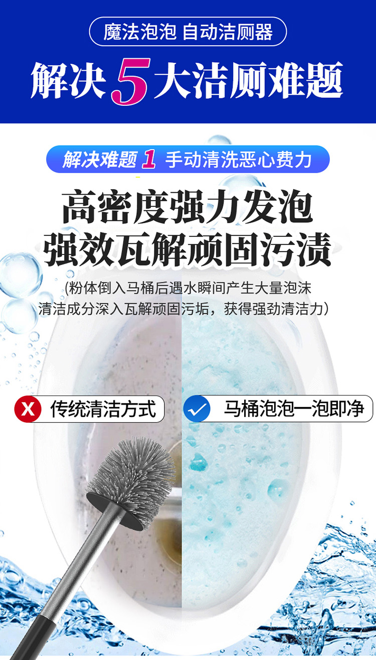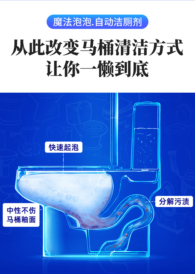 【魔法泡泡自动清洁,告别马桶刷】白倍极马桶清洁剂泡泡 去污力强,不伤马桶釉面,360°无死角自动清洁,除味杀jun