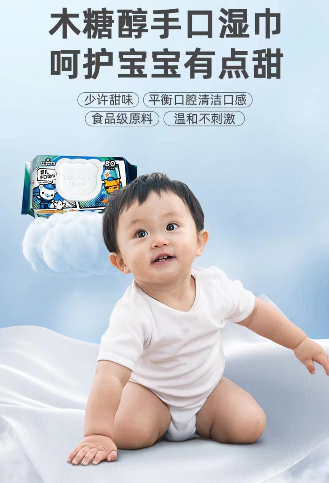 憨贝洁-海底小纵队婴儿手口湿巾80抽*6包加大加厚款手口专用