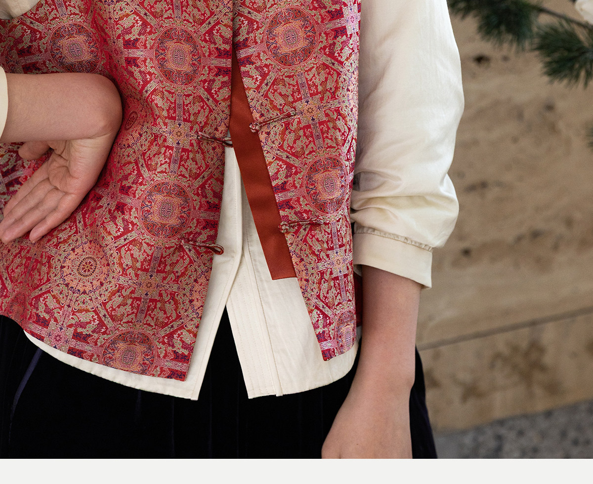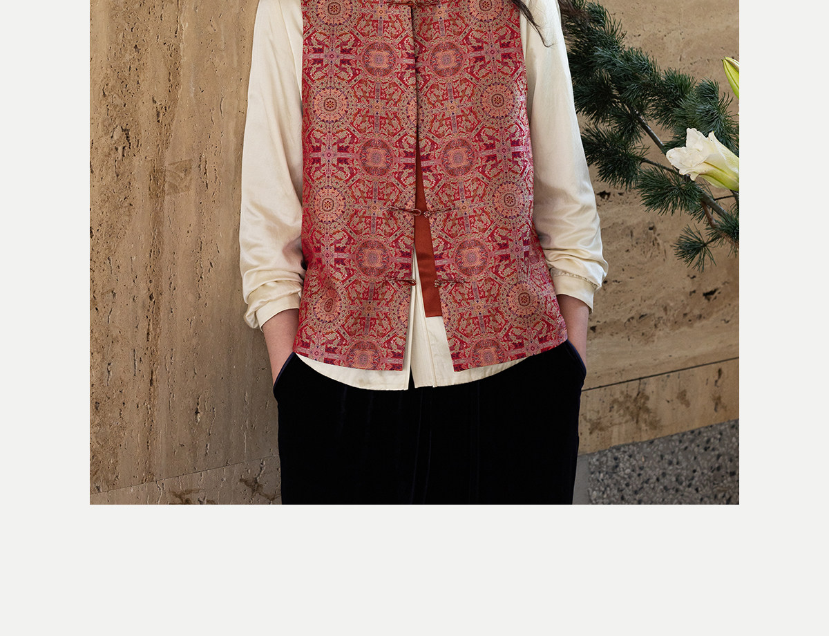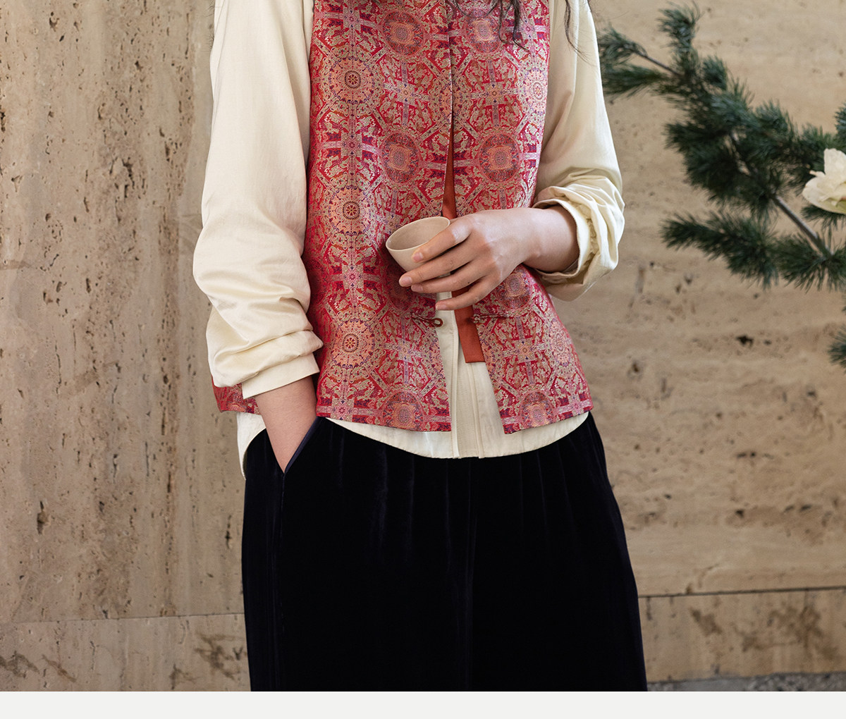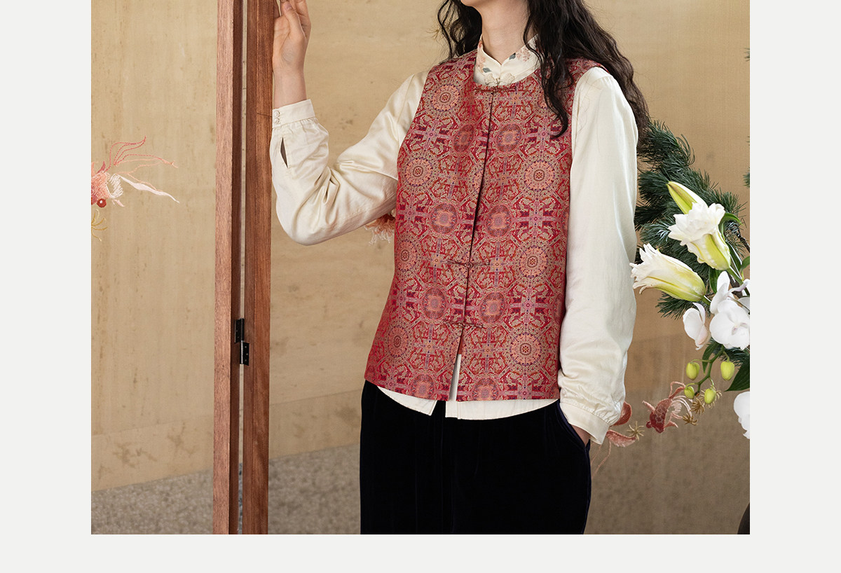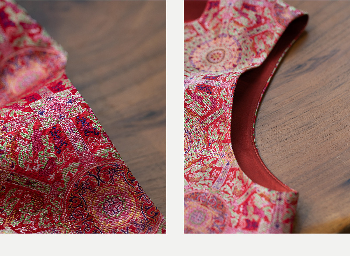 牧衣游原创 48姆米重磅织锦八达晕桑蚕丝马夹开衫红色百搭 寄明月