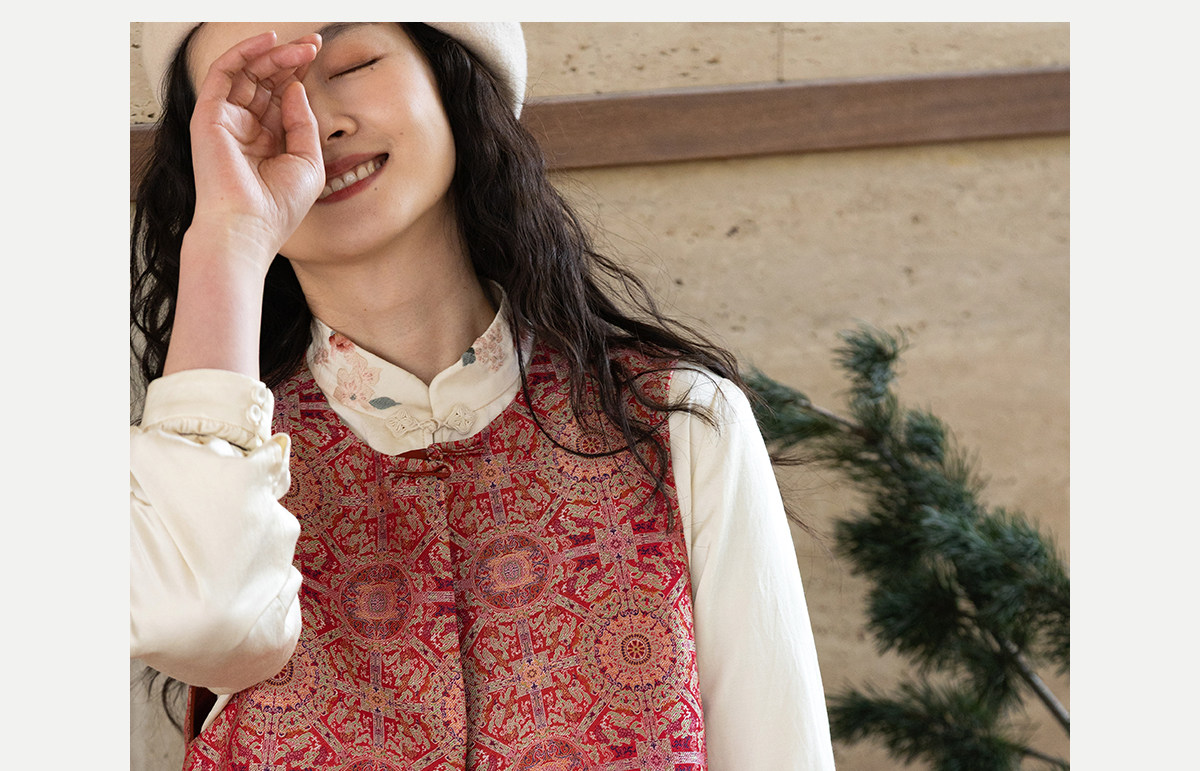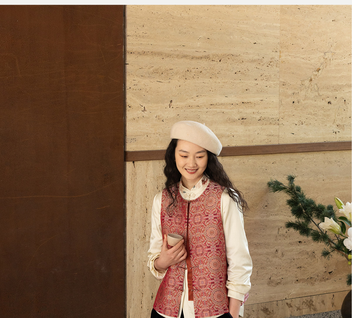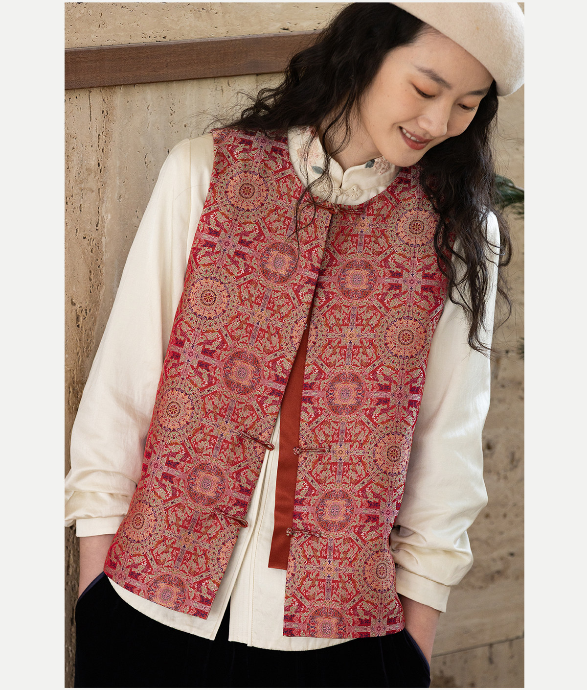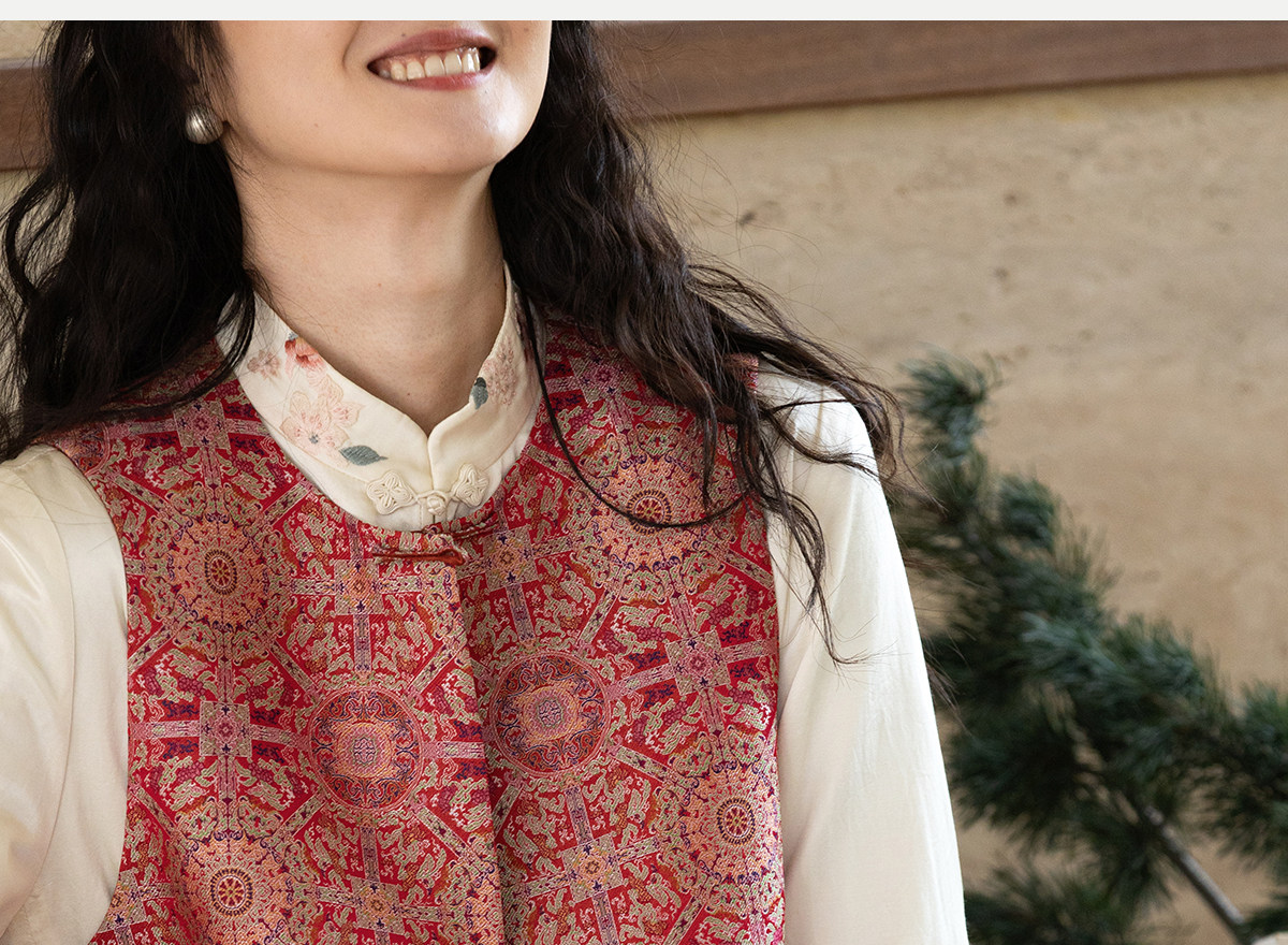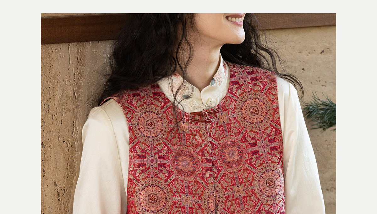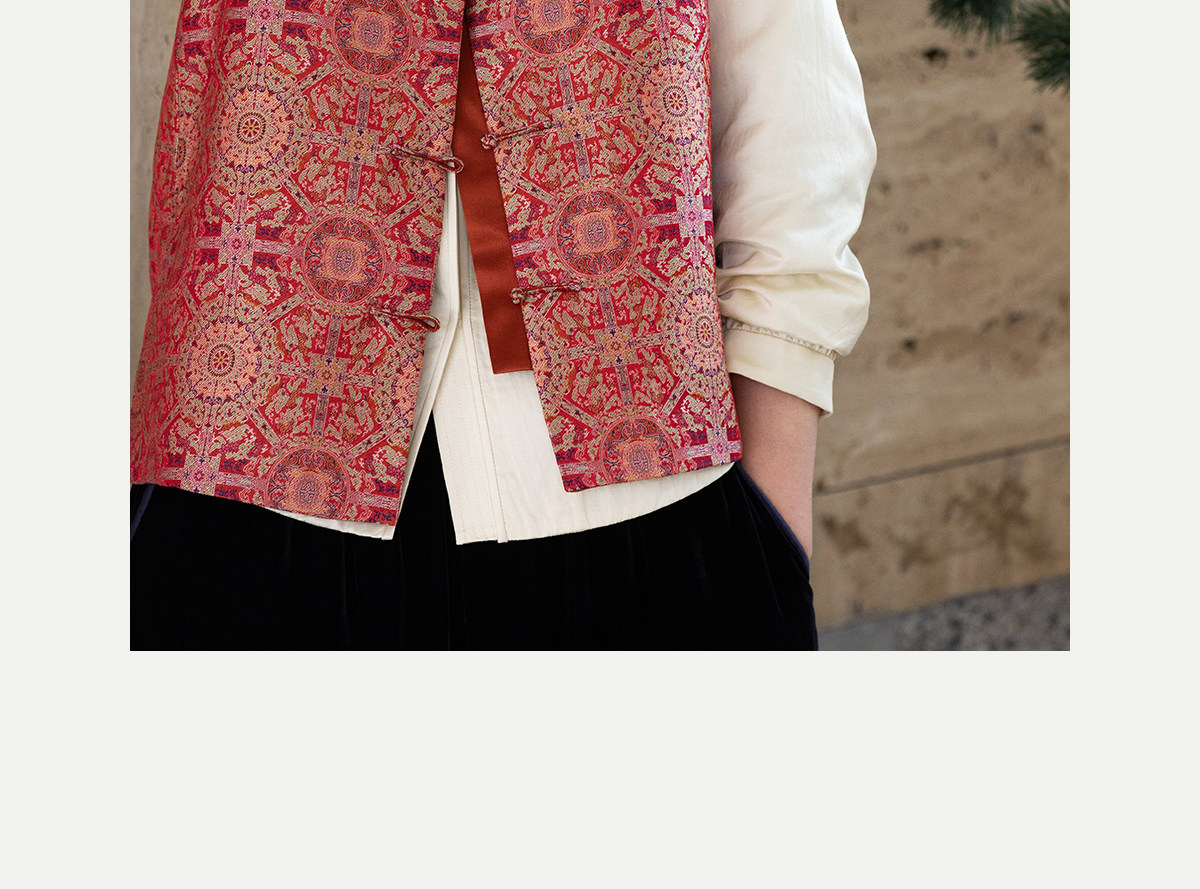 牧衣游原创 48姆米重磅织锦八达晕桑蚕丝马夹开衫红色百搭 寄明月