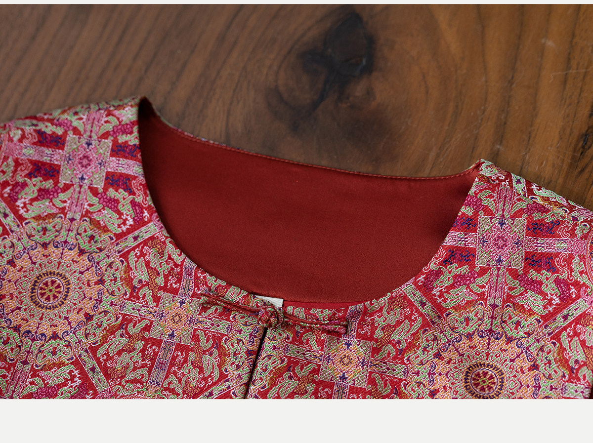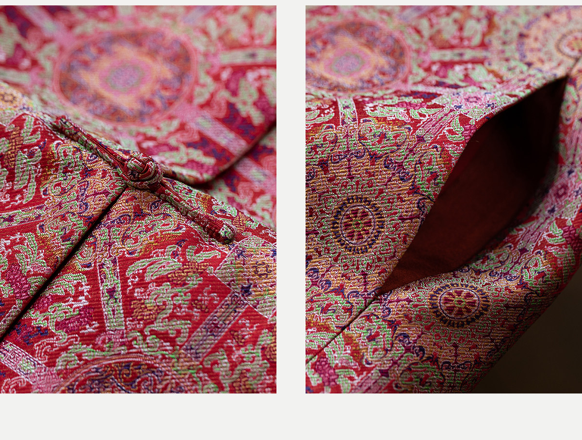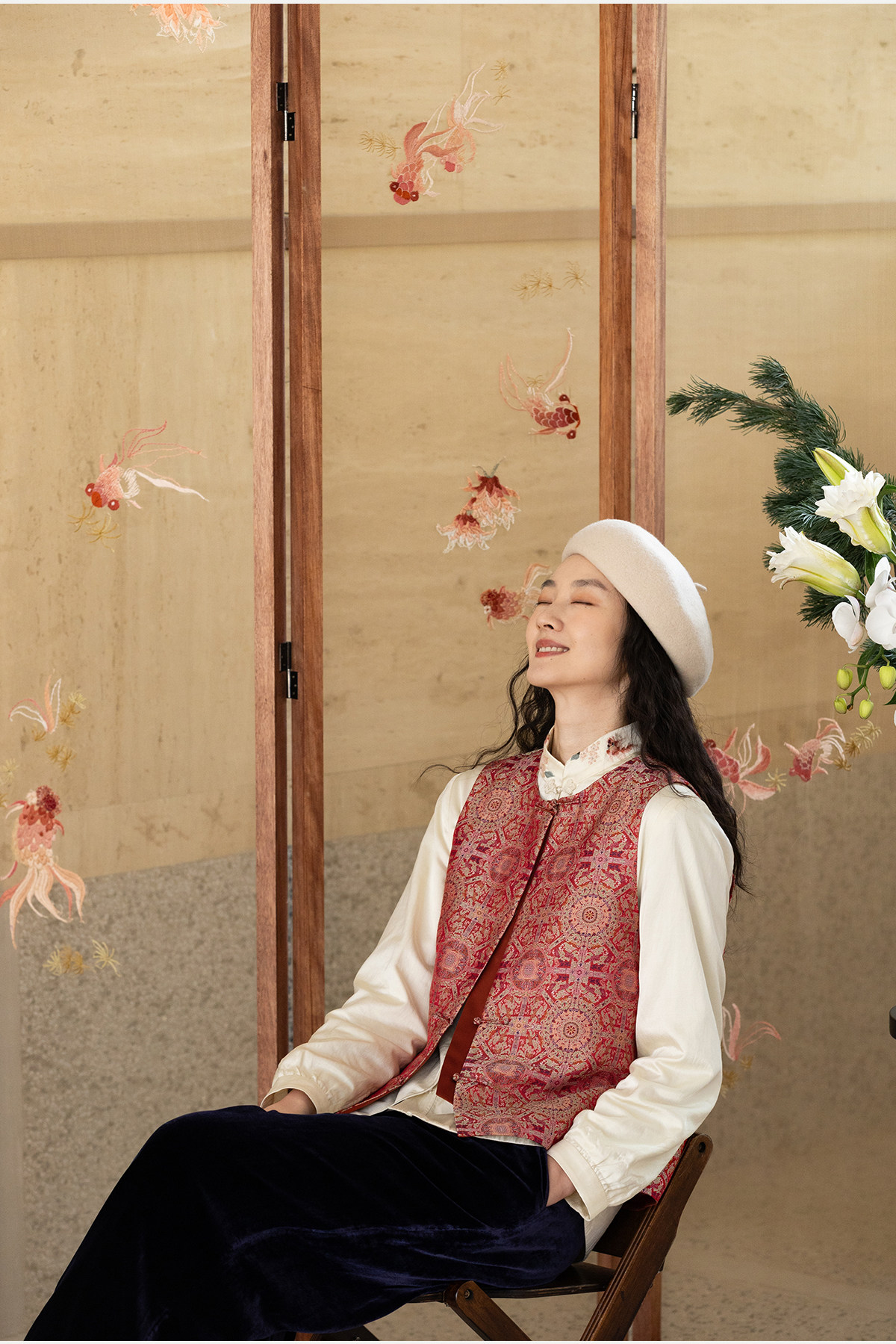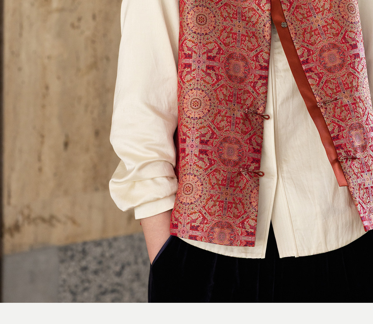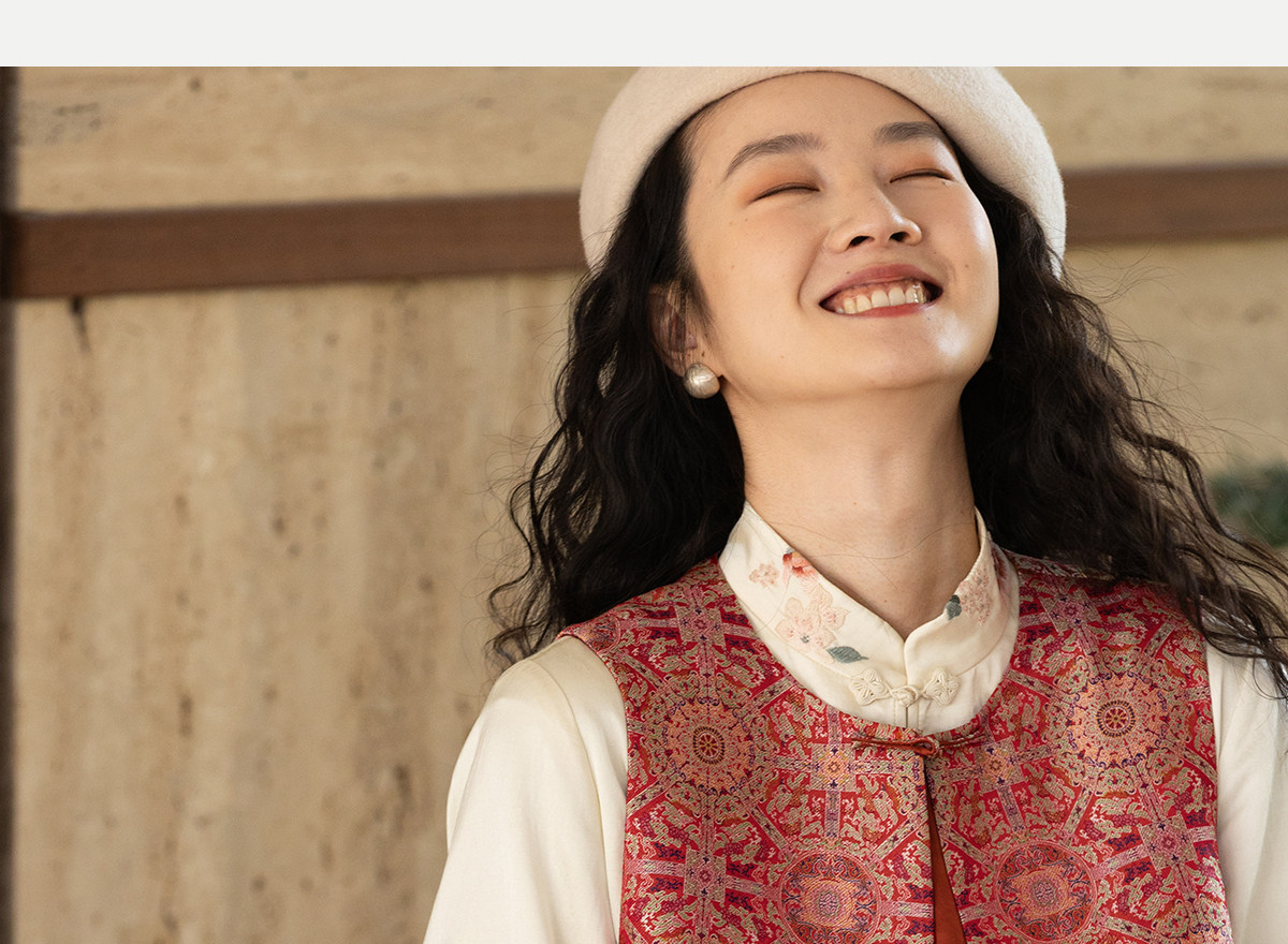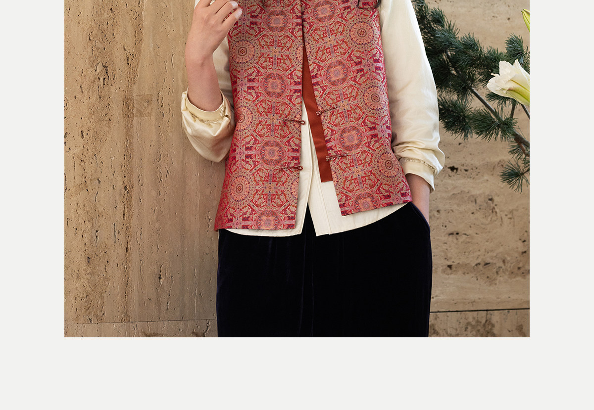 牧衣游原创 48姆米重磅织锦八达晕桑蚕丝马夹开衫红色百搭 寄明月