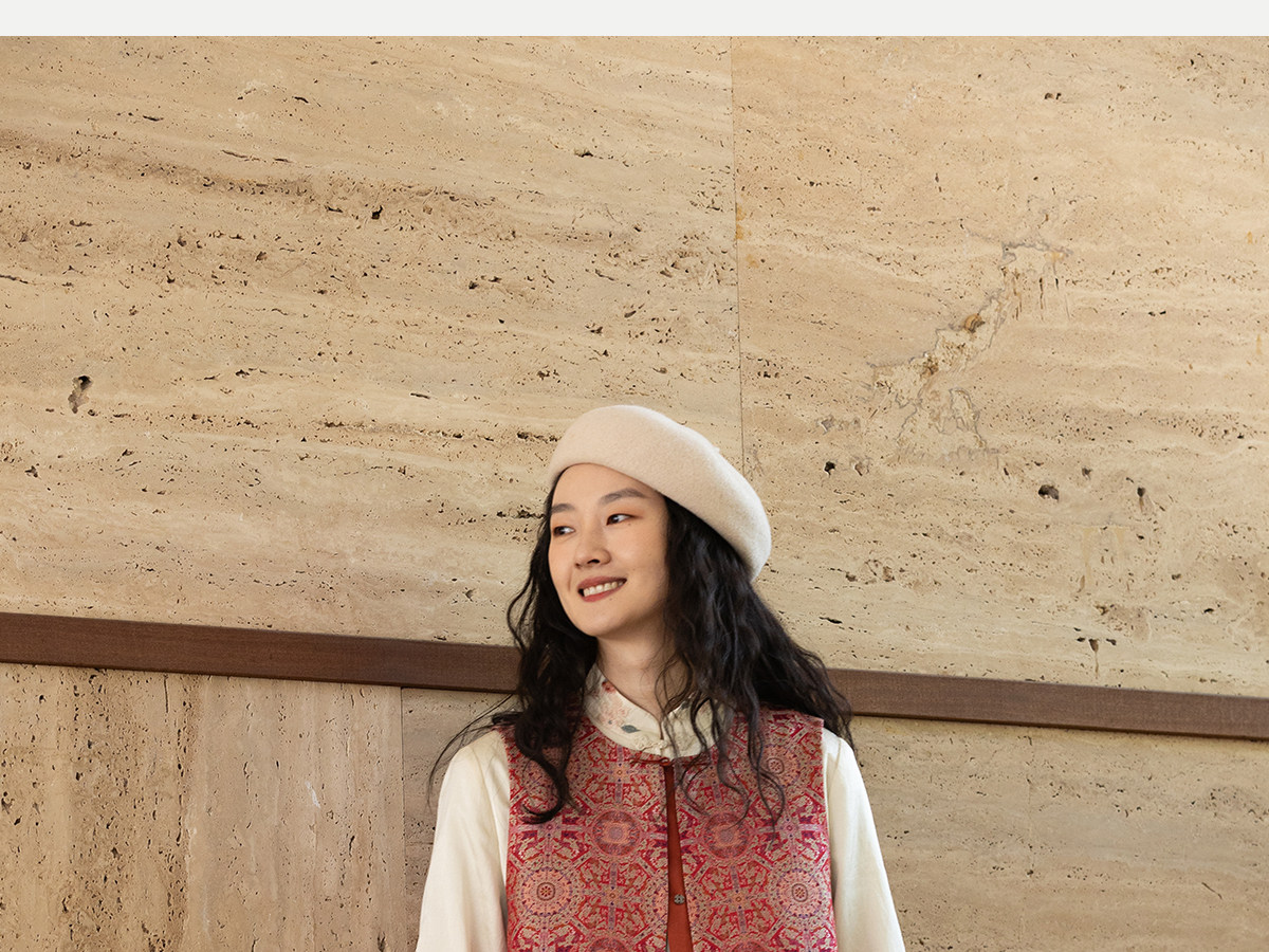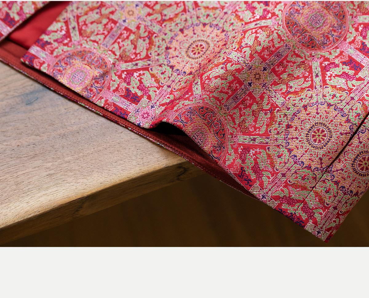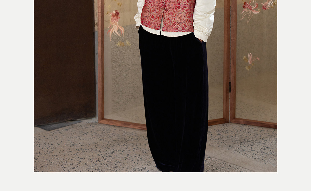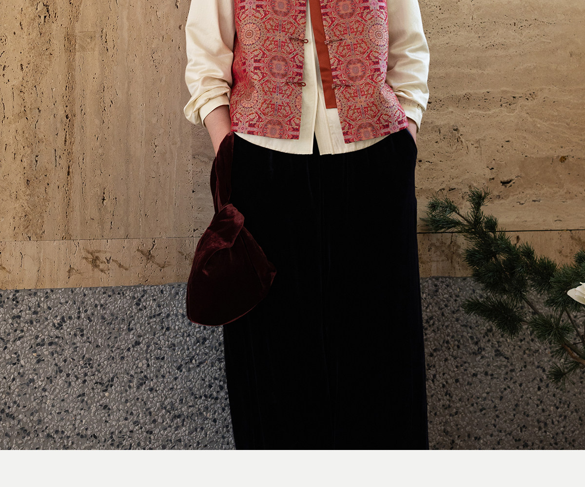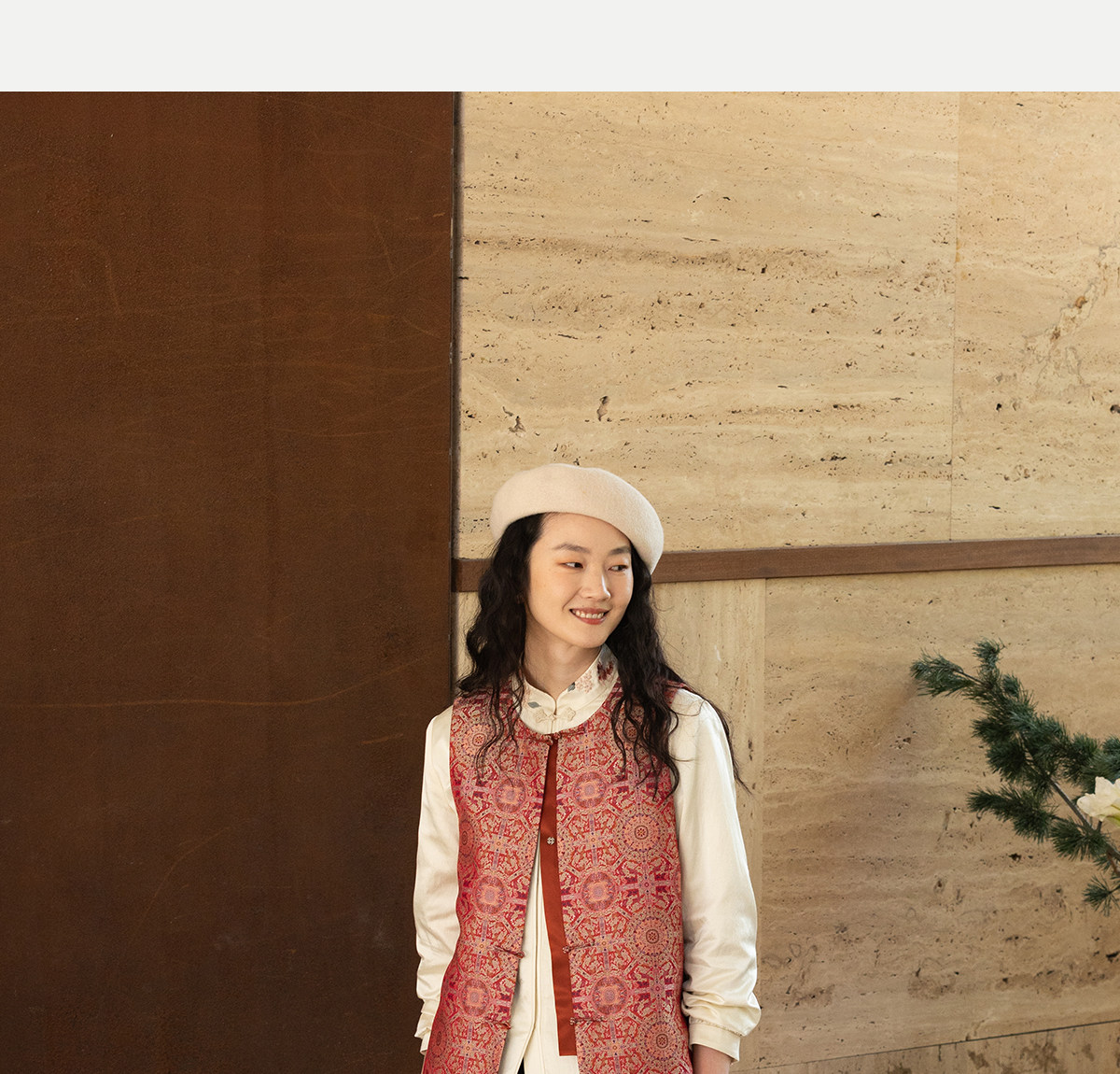 牧衣游原创 48姆米重磅织锦八达晕桑蚕丝马夹开衫红色百搭 寄明月