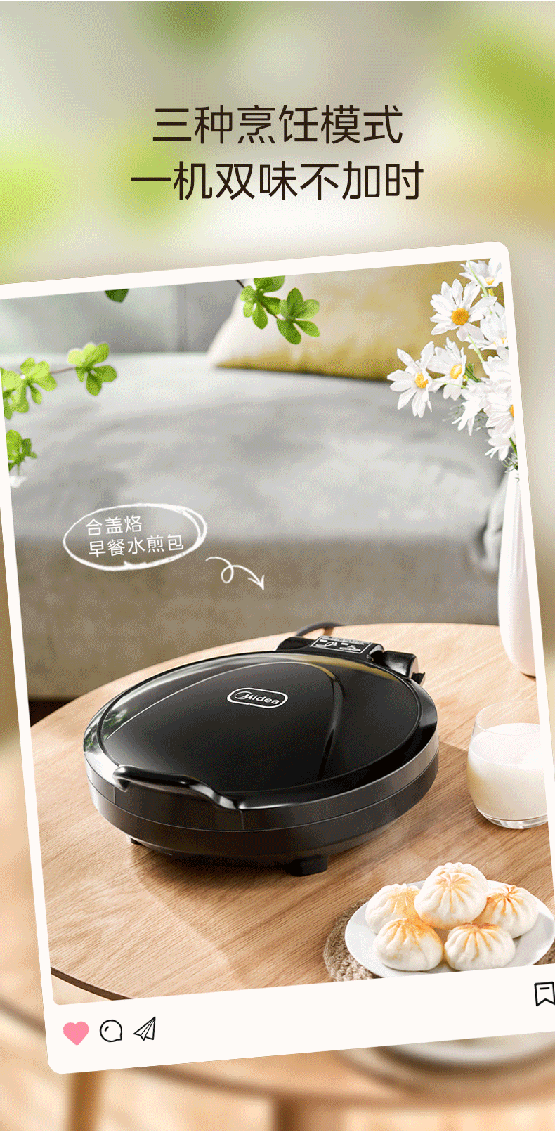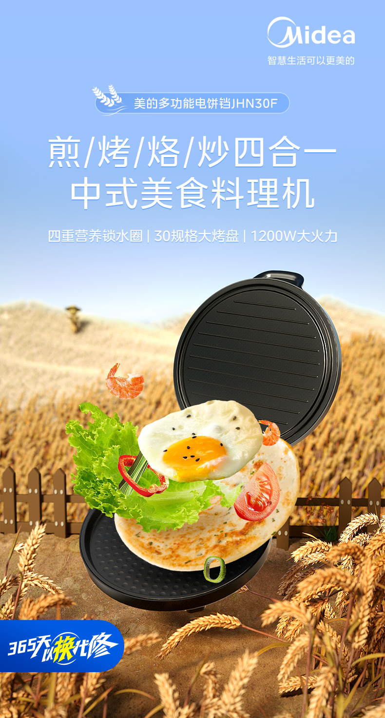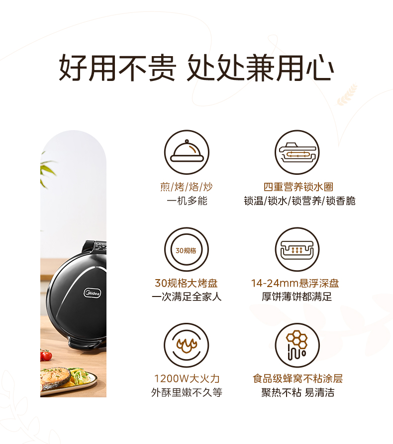 美的 煎烤烙炒四合一电饼铛JHN30F 三种烹饪模式 一机双味不加时