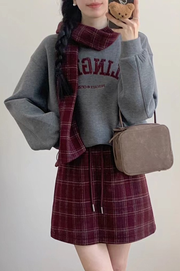 HAYES 减龄甜美字母加绒卫衣A字裙三件套装 21993