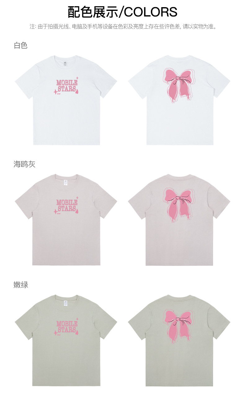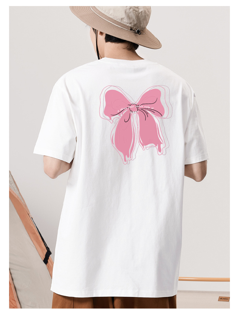 「16色可选!230g重磅面料」蝴蝶结短袖上衣女内搭打底2023夏季新款粉色半袖t恤情侣装短袖潮