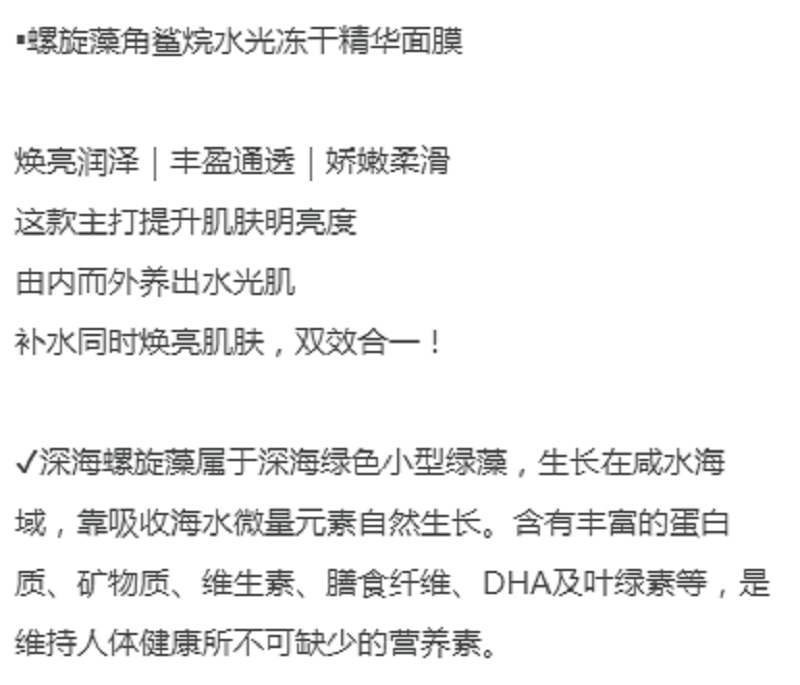 螺旋藻角鲨烷水光冻干精华面膜