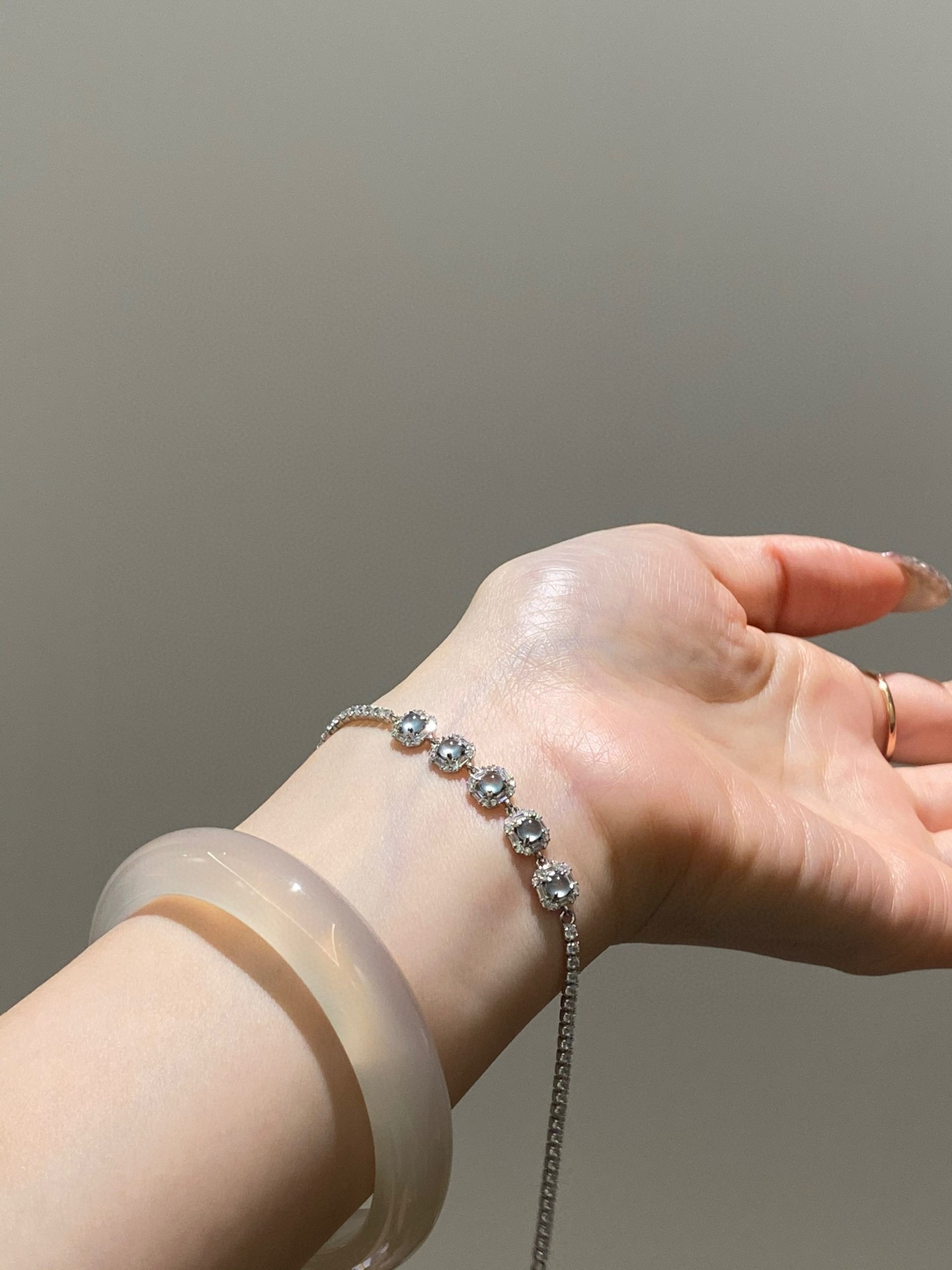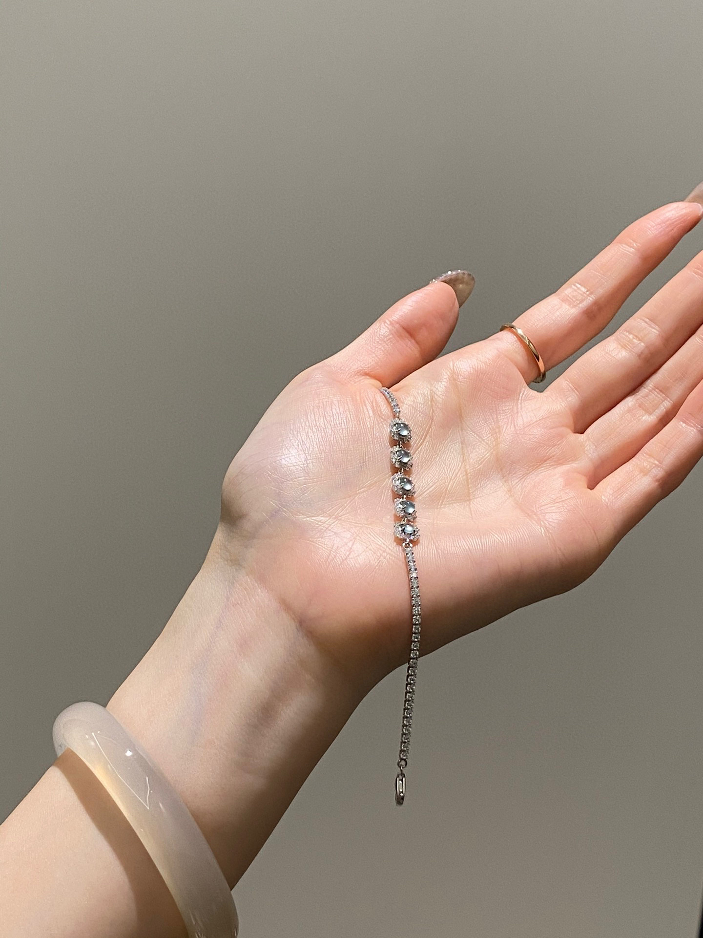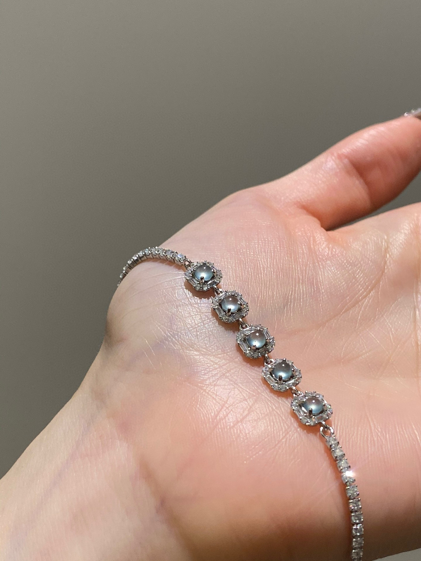 整条手链镶嵌的材质都是纯银