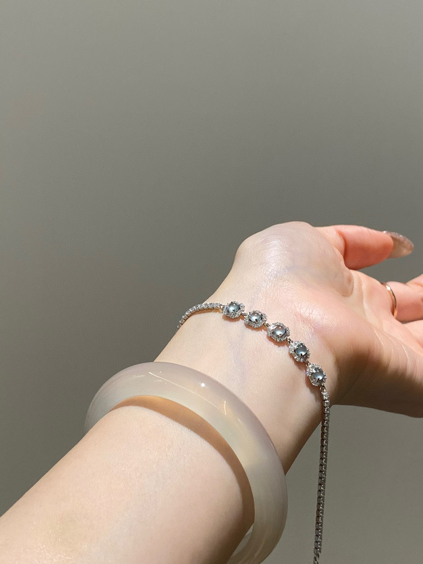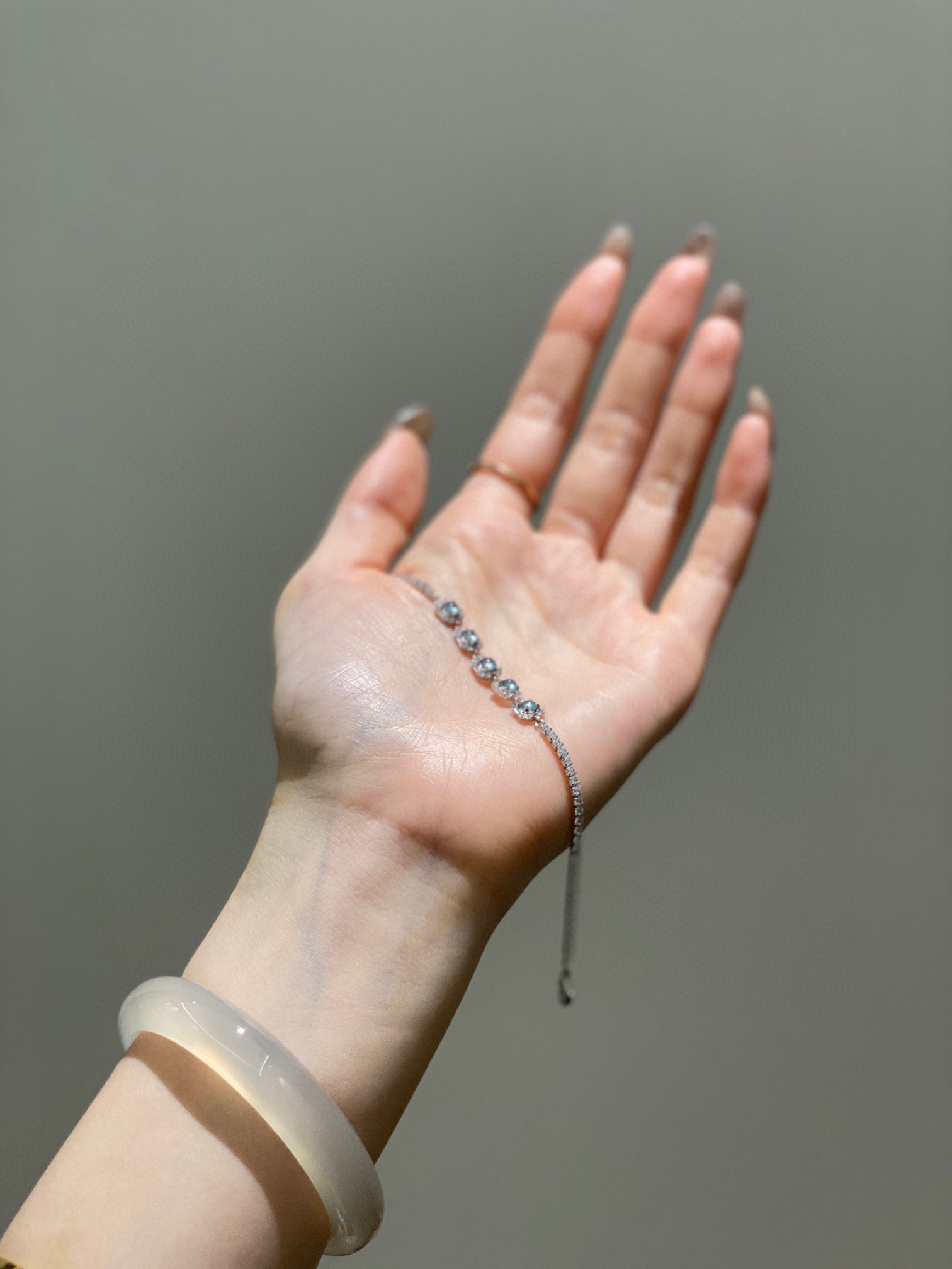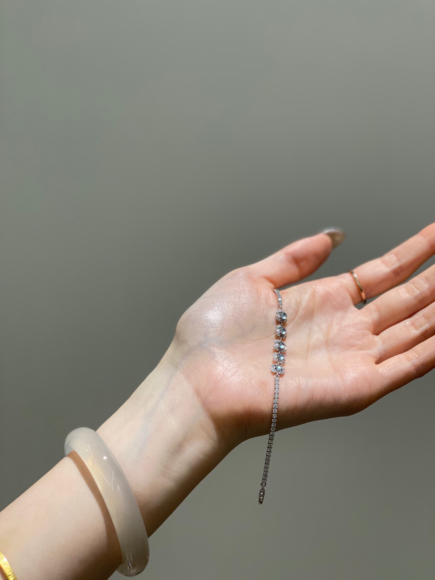 整条手链镶嵌的材质都是纯银