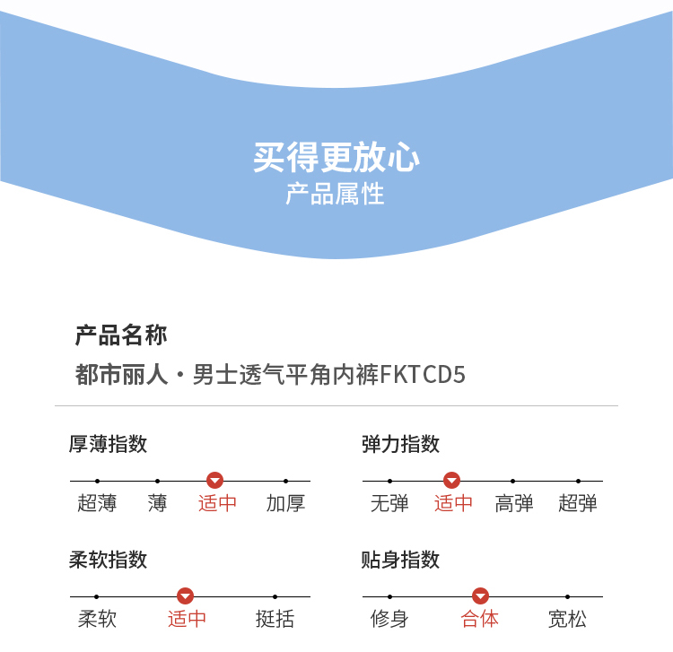 都市丽人都市锋尚内裤简约基础平角裤40S棉拉架男士内裤FKTCD5