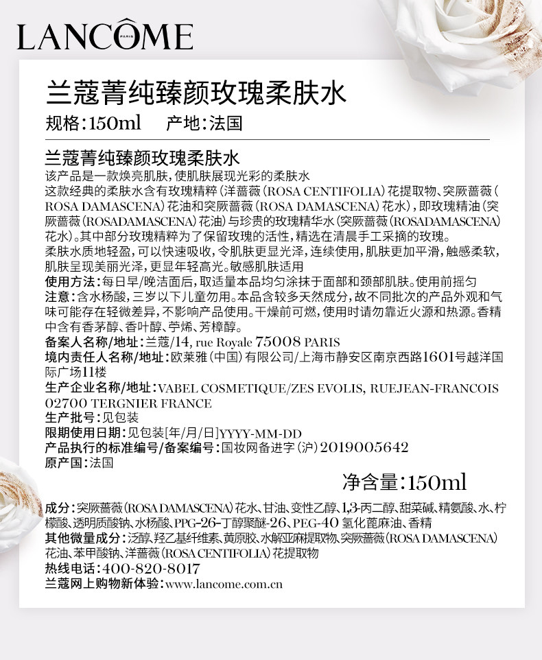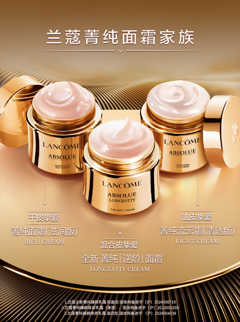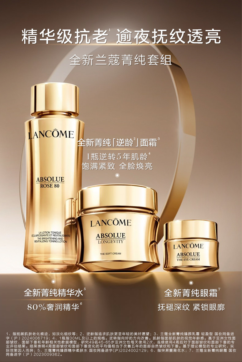 兰蔻全新菁纯套装水150ml+眼霜20ml+逆龄面霜60ml紧致护肤