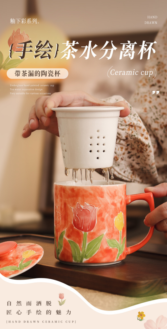 釉下彩茶隔杯礼盒装 秋日的小温暖,老师的办公桌多一个小装饰颜值高,实用性能强。 这也是上班族必BUY在公司时时刻刻都能喝上一杯养生茶的精致好物。 精致优雅,气质高昂,触摸起来非常有质感,而且釉色十分均匀~平时放在办公桌、床头或是茶几上,就是一件精致的艺术品! 常送鲜花表达不了对老师中秋节的祝福送月饼表达不了对老师教师节的关心? 教师节和中秋节相撞的日子! 唯有一套实用泡茶具既能表达祝福又能关心老师身体 用一份礼物出来表达双重心意! 礼轻情意重