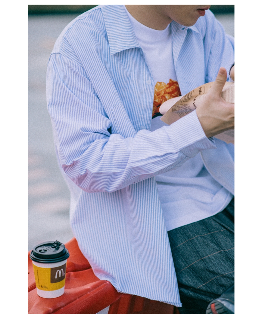 OURDAILYDOSE 19AW STRIPED SHIRT 复古宽松古巴领口袋条纹衬衫