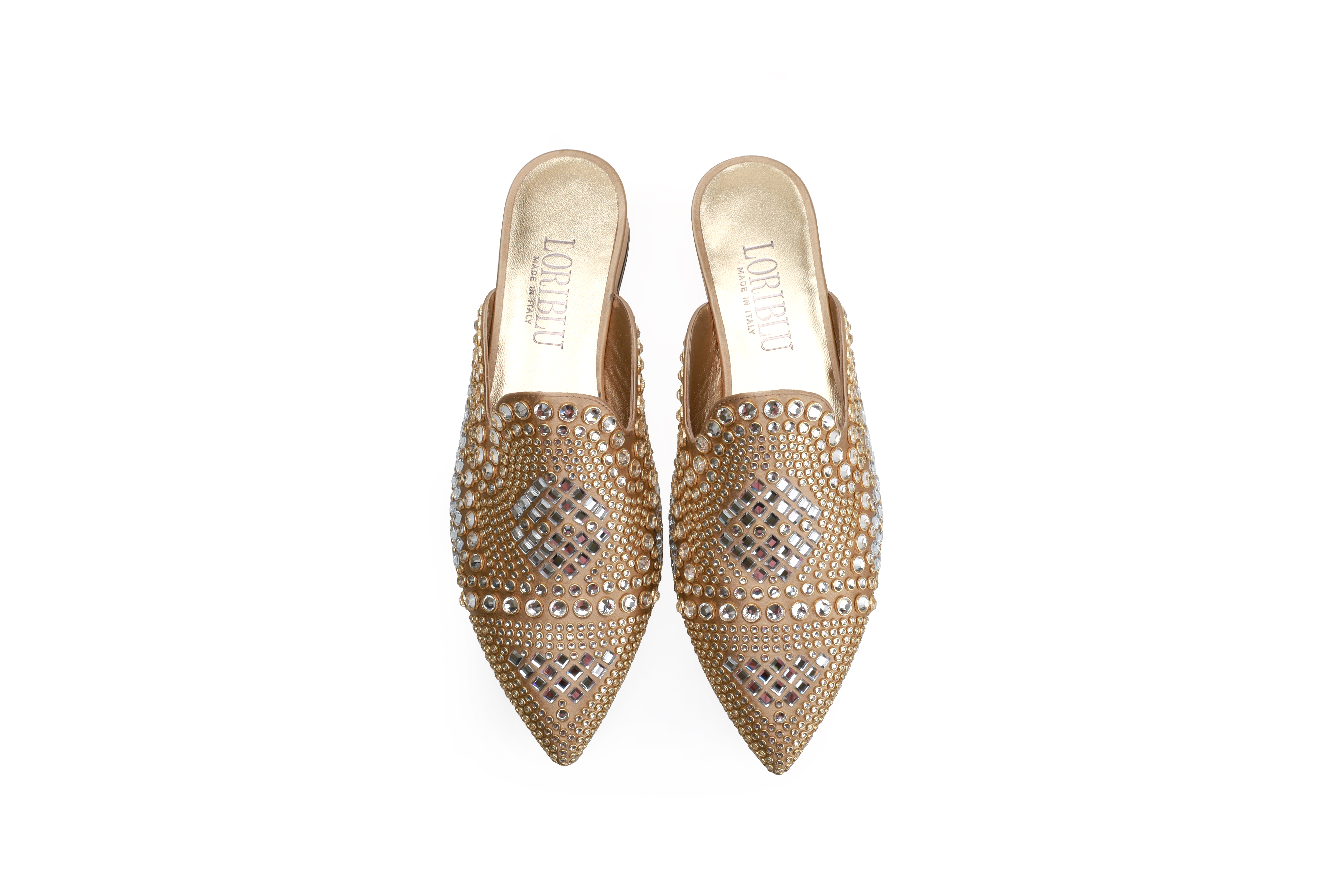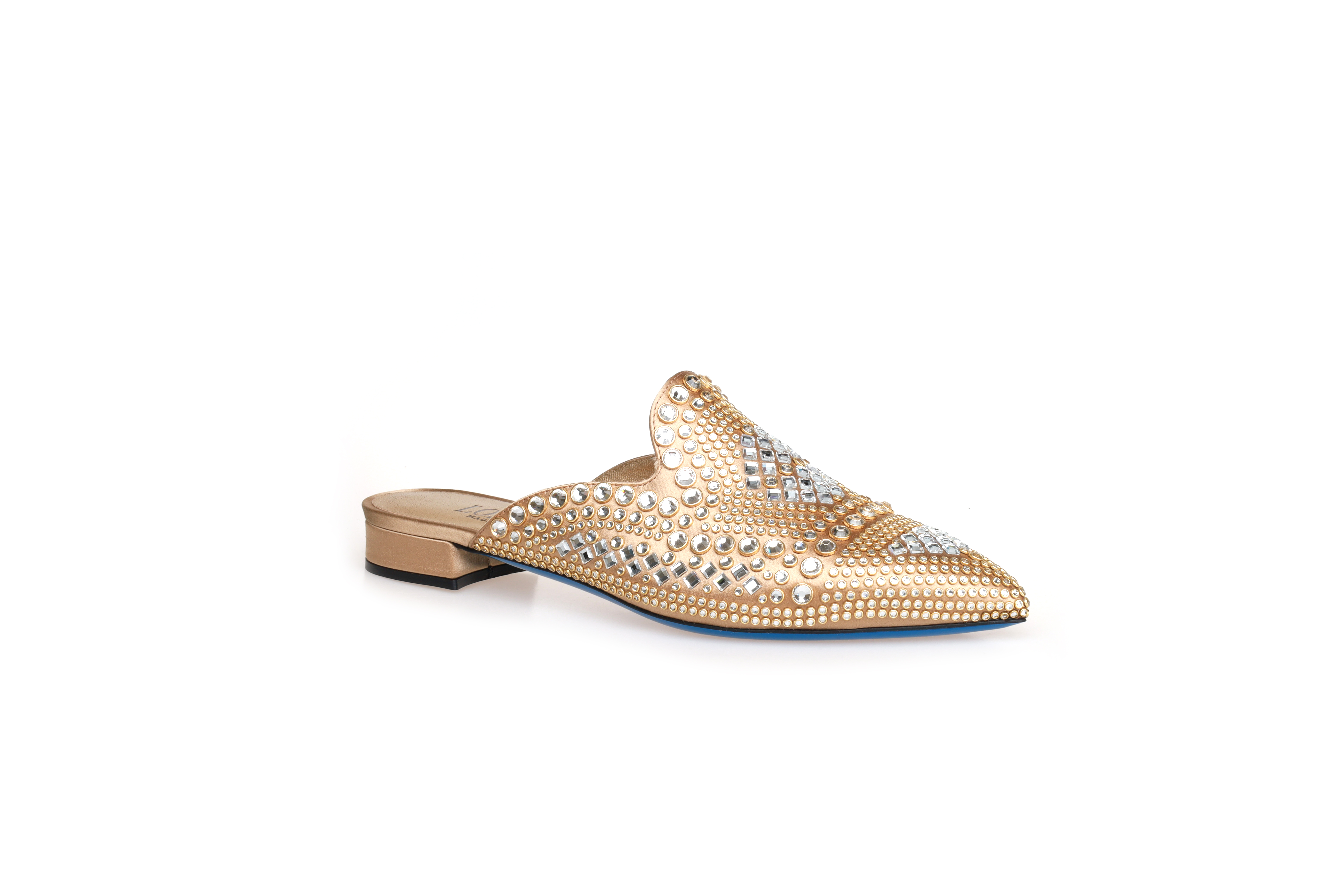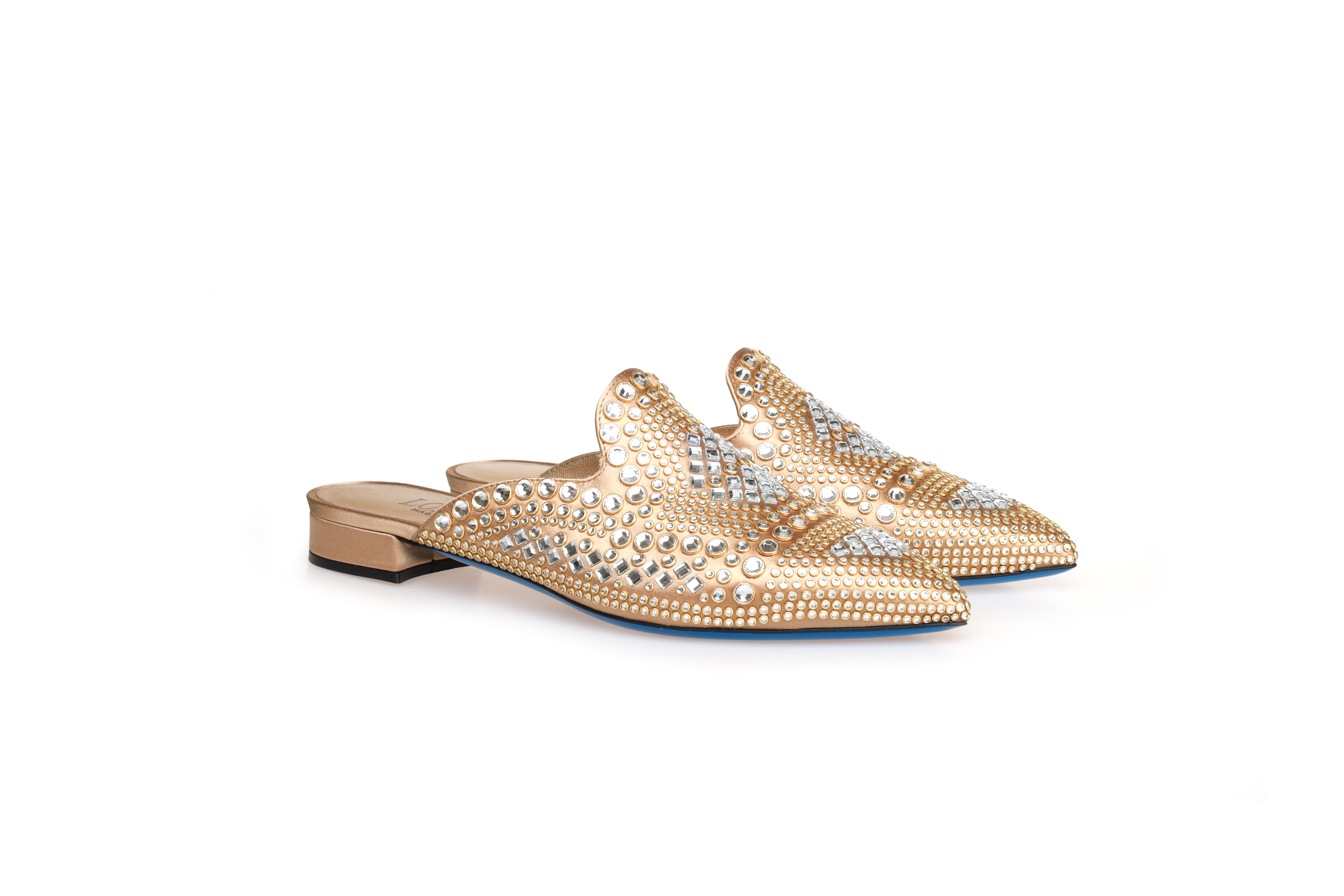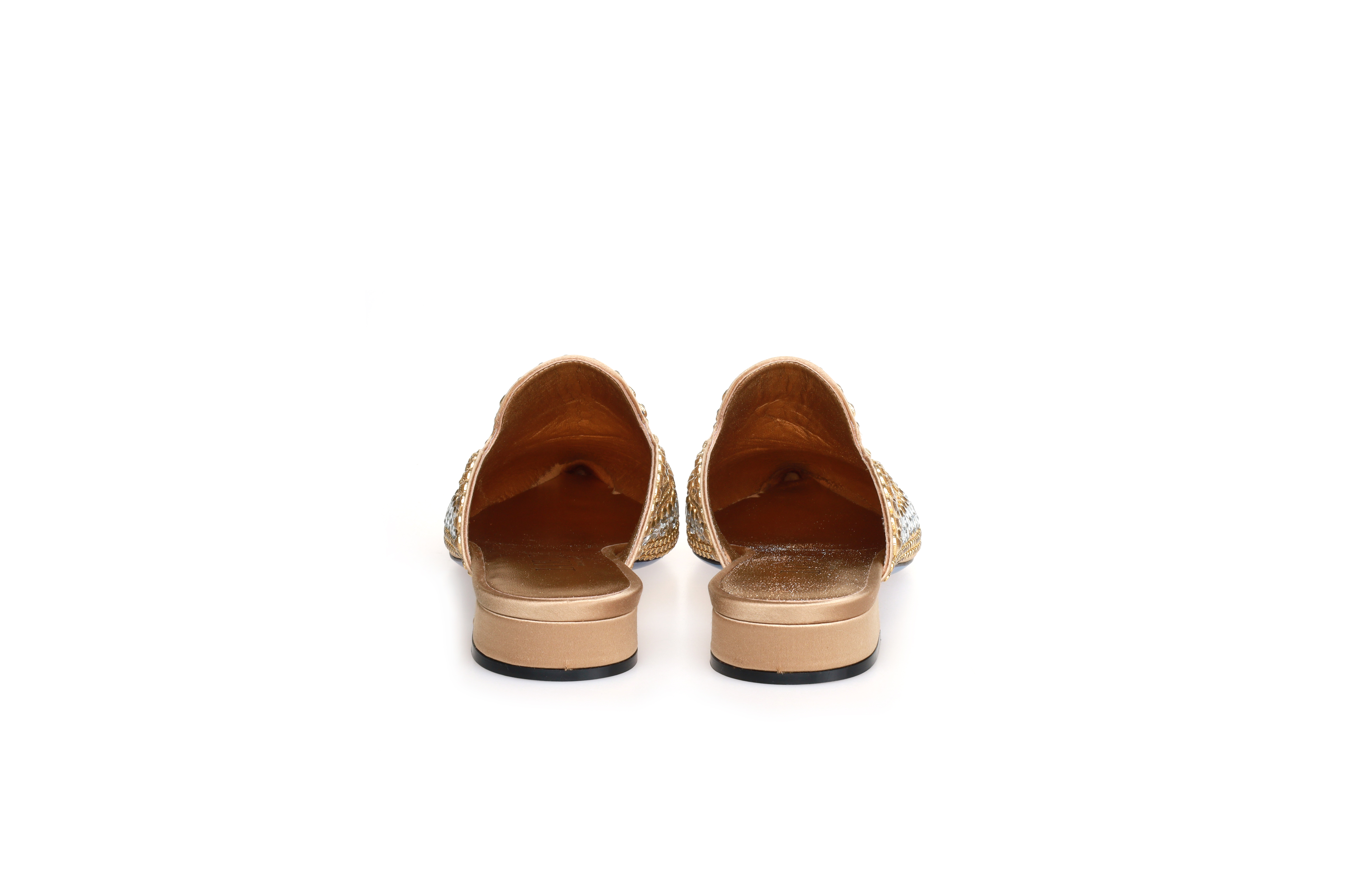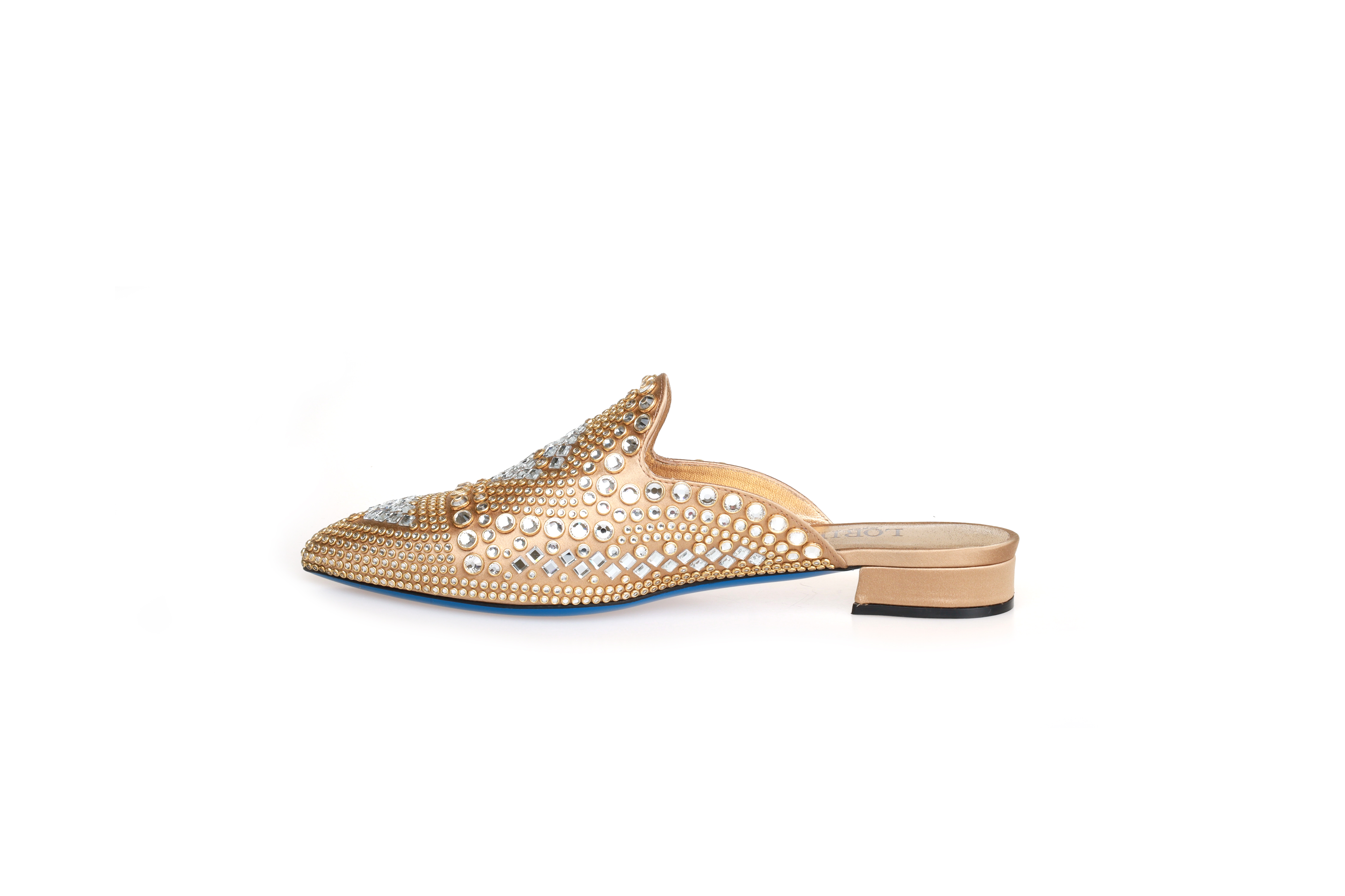 豪麟名鞋LORIBLU女鞋半凉鞋真丝布5EMIN81G金色