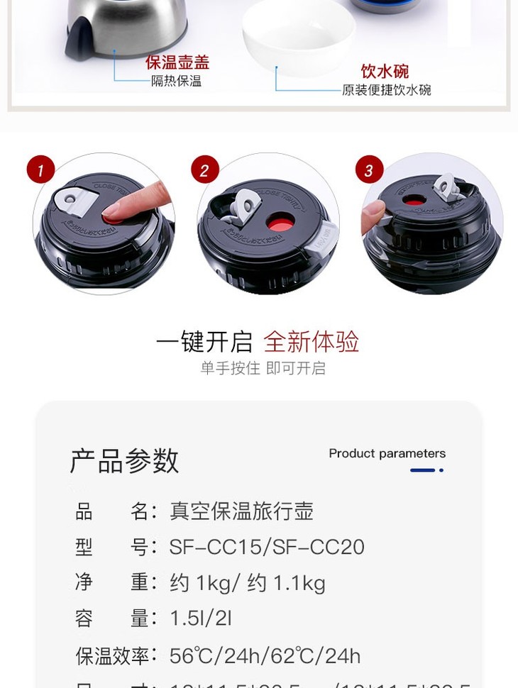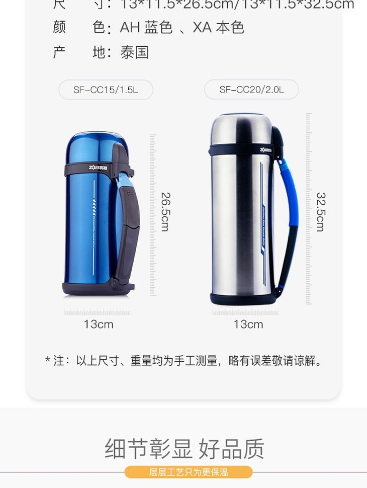 象印焖烧杯 真空保温杯SF-CC20大容量户外车载旅行保温杯CC15 CC15 1.5L(带把手)