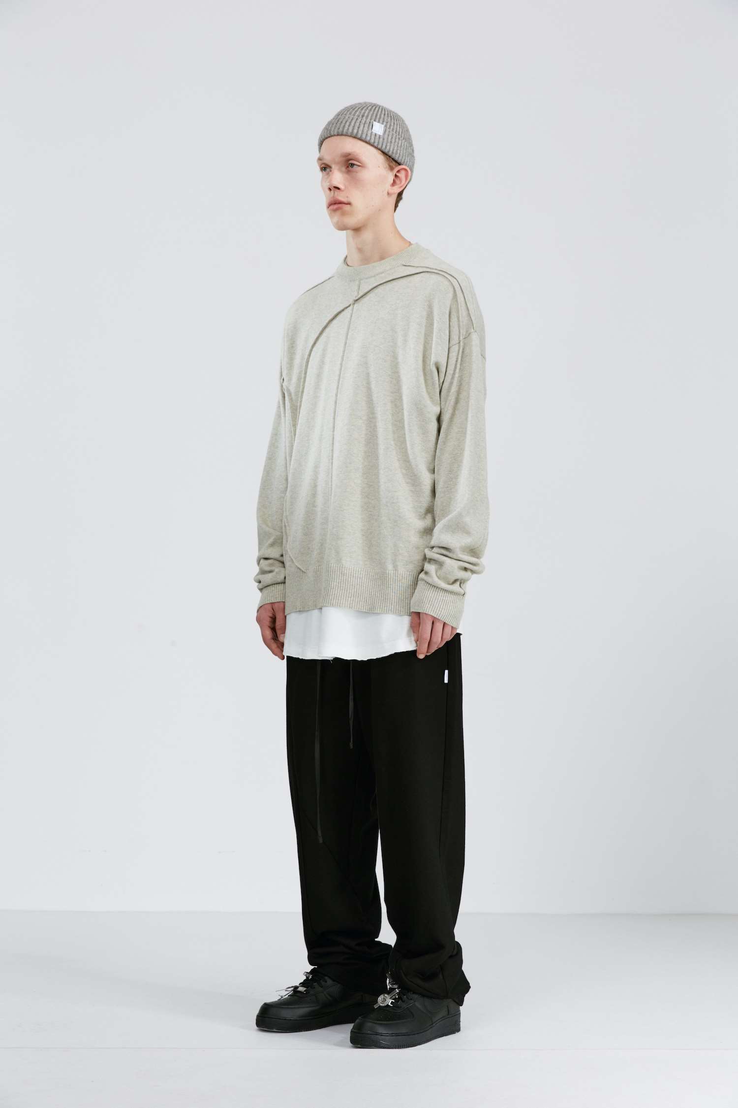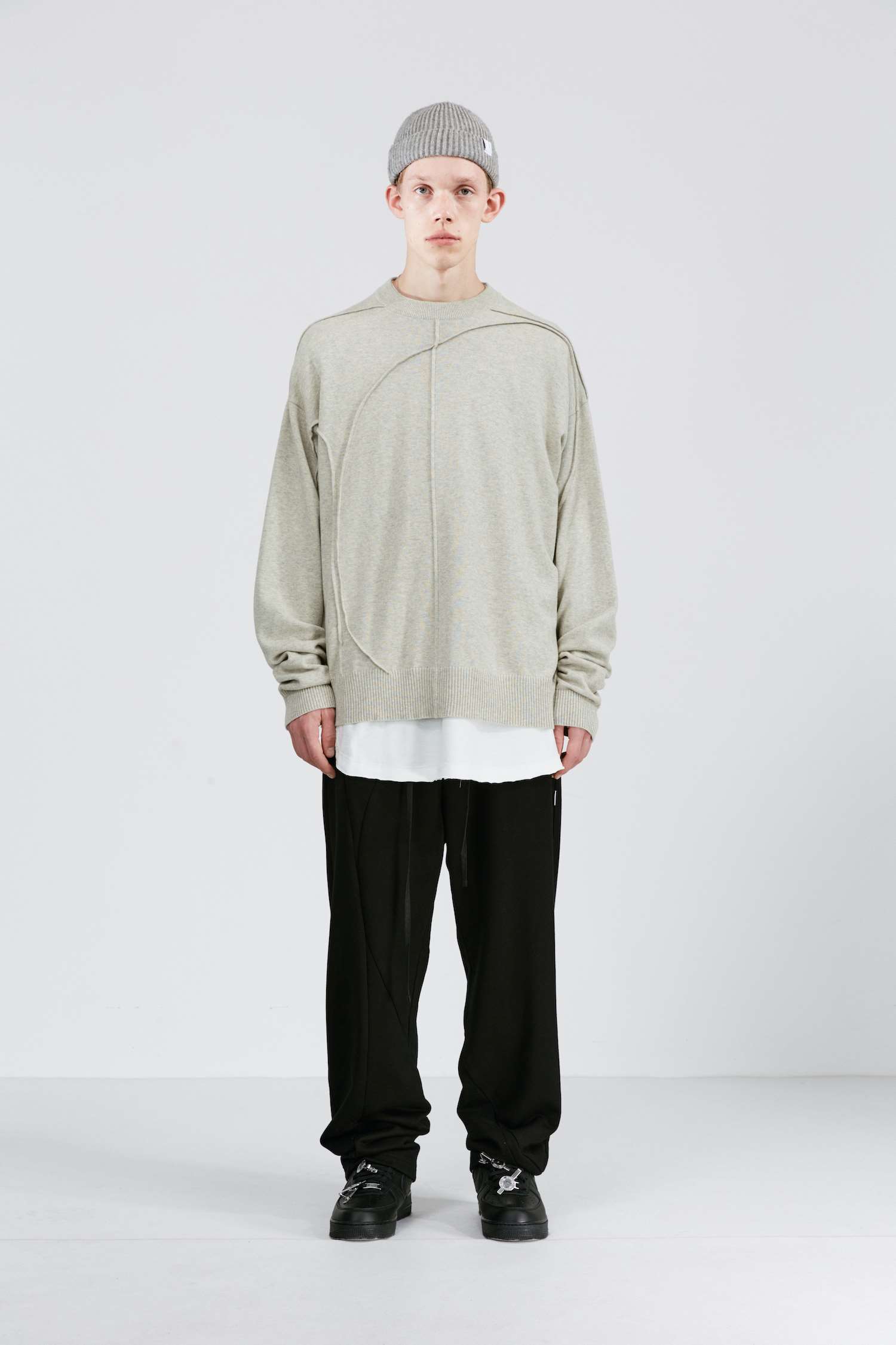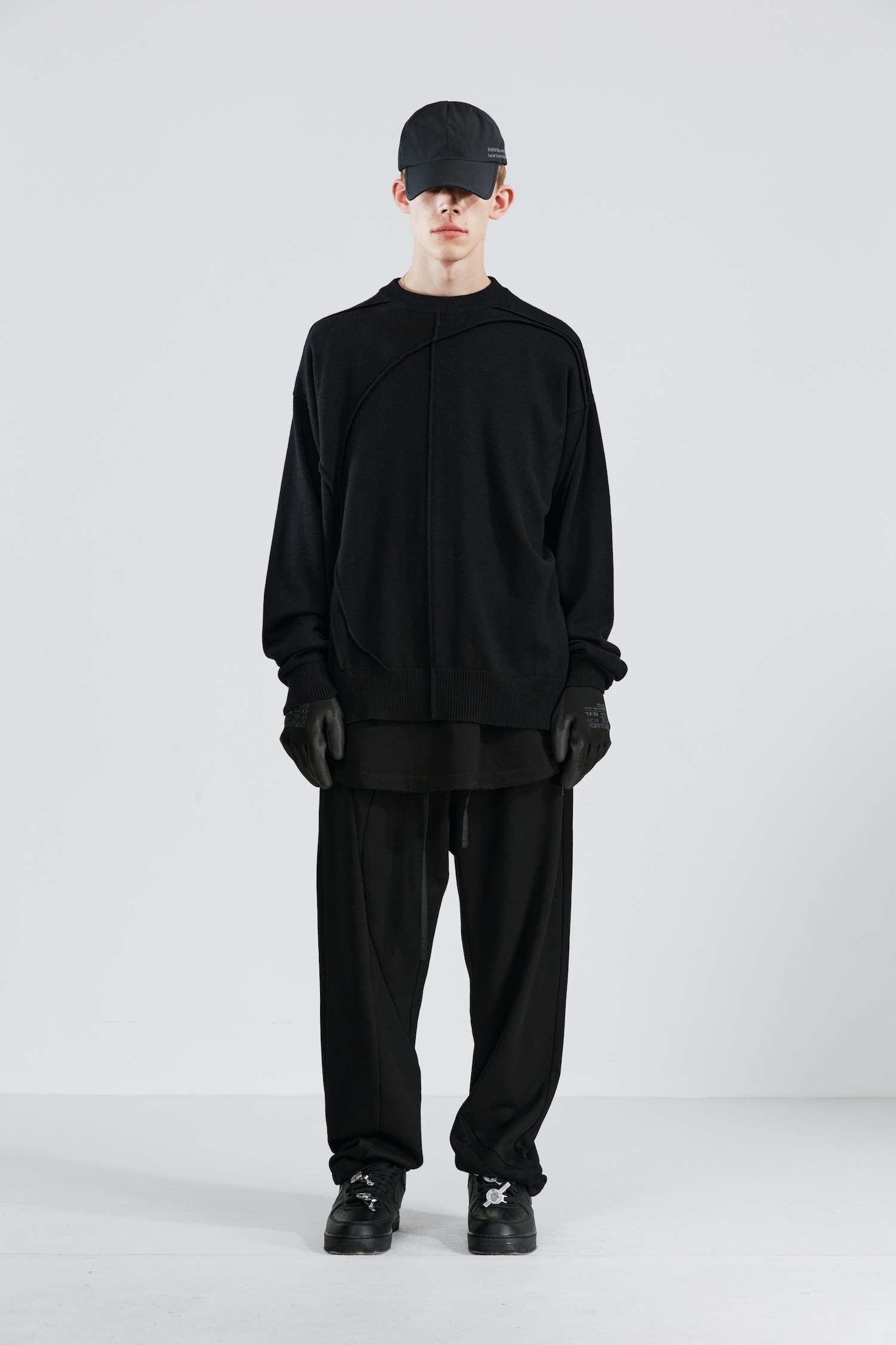 ATTEMPT SS21 纯色立体线性羊绒混纺针织衫明线圆领休闲百搭宽松