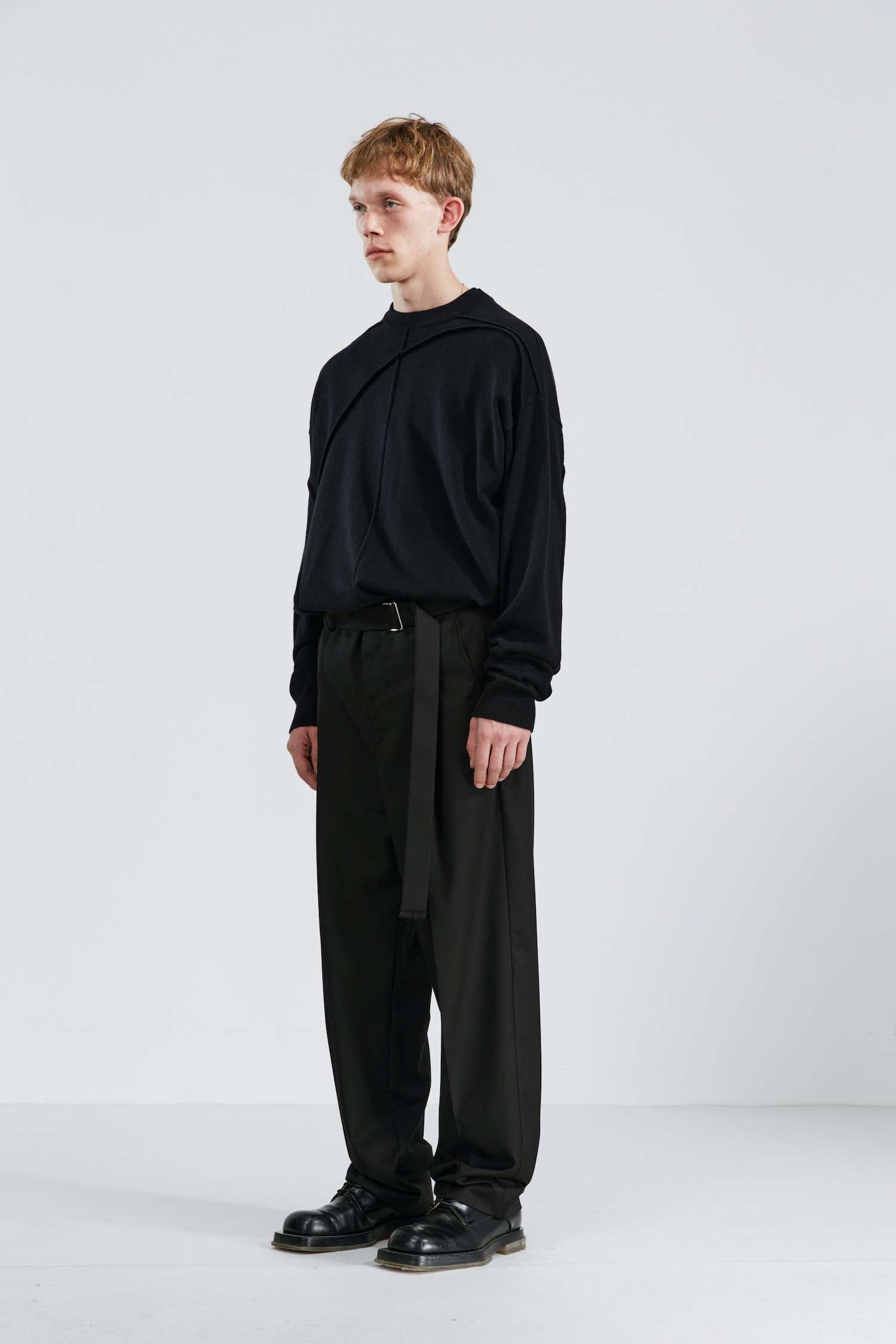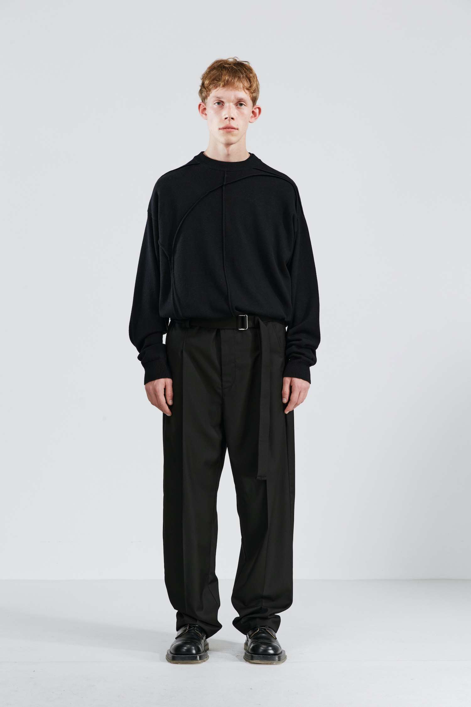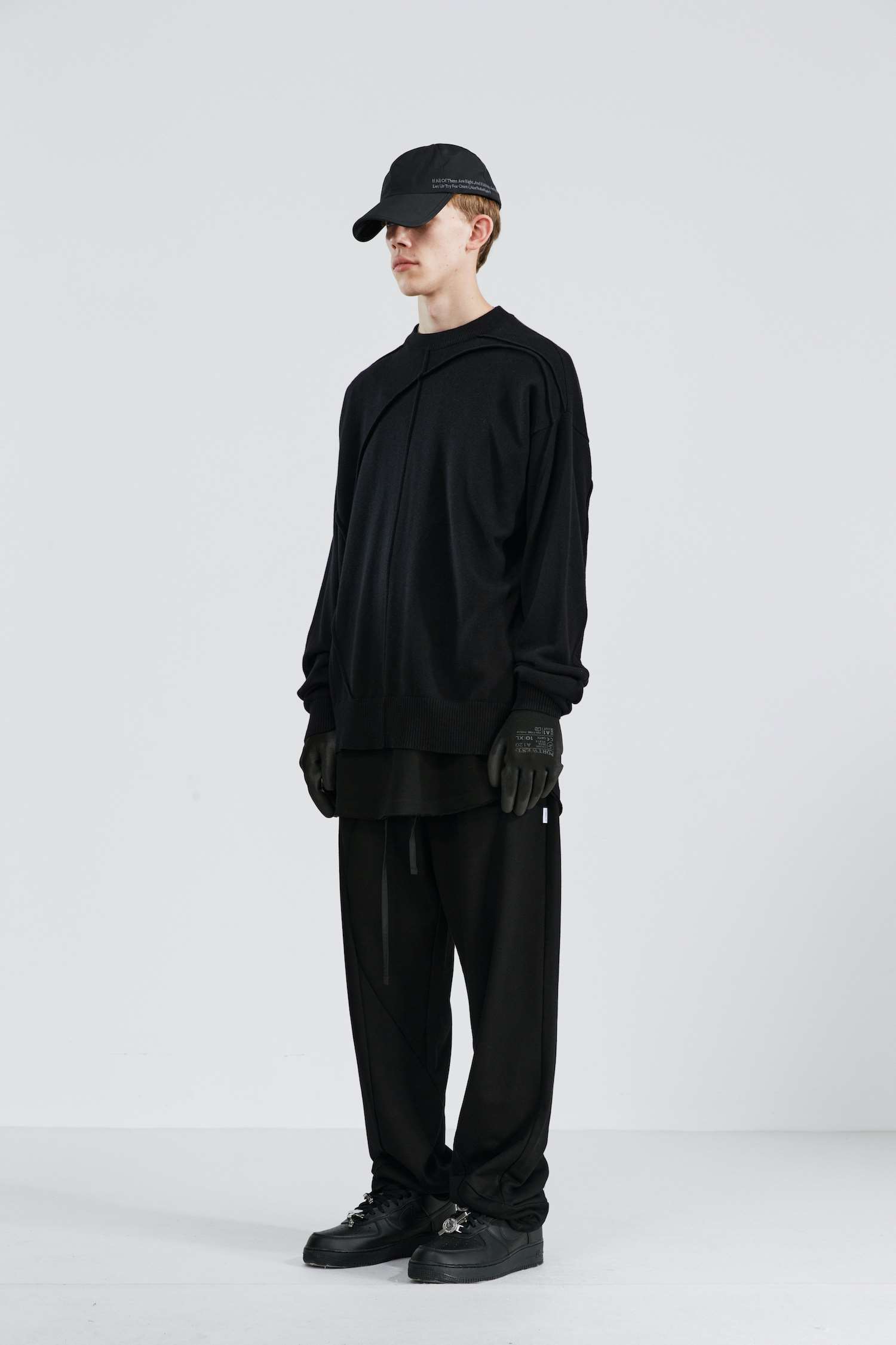 ATTEMPT SS21 纯色立体线性羊绒混纺针织衫明线圆领休闲百搭宽松