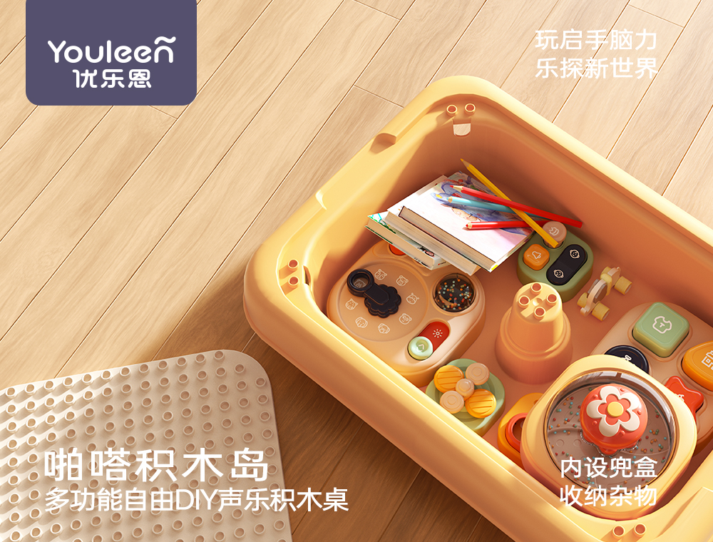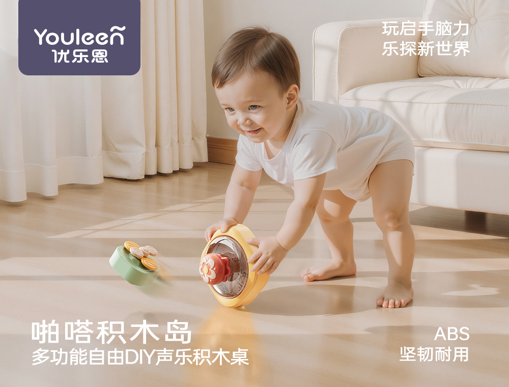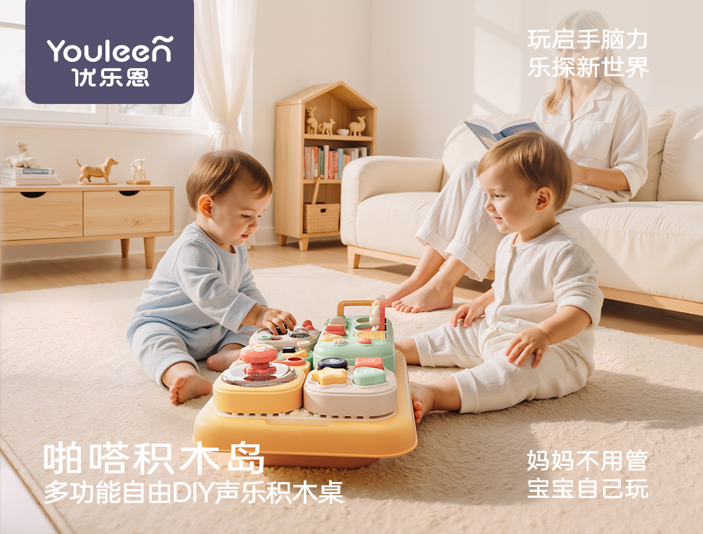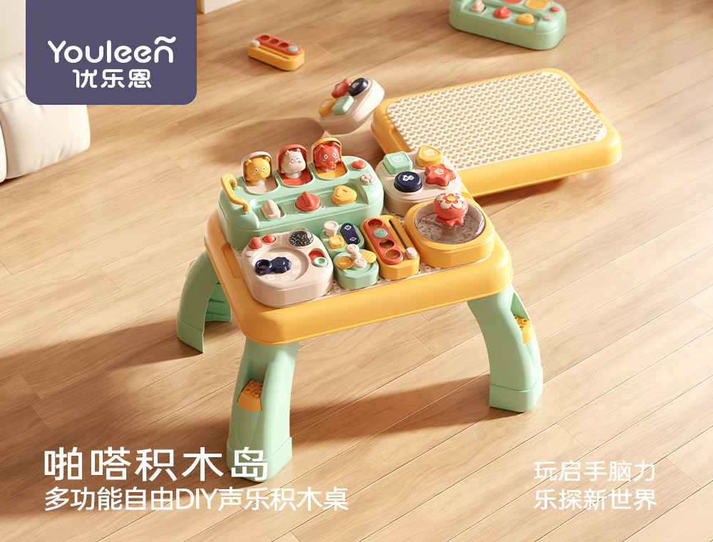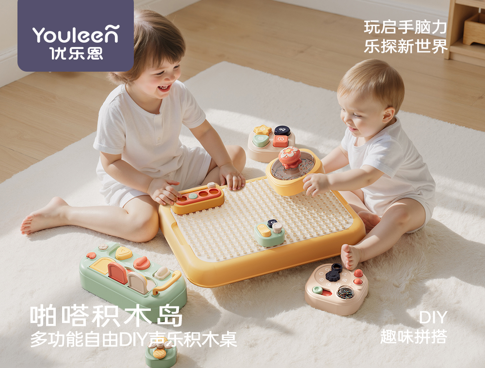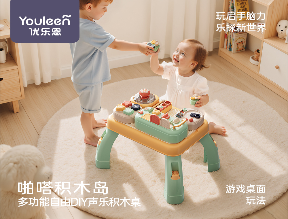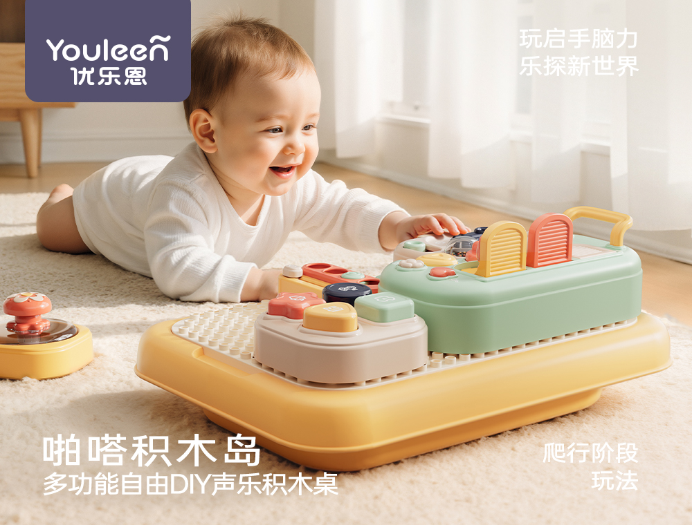 优乐恩婴儿玩具礼盒早教积木桌积木岛早教益智玩具男女宝周岁新年送礼盒