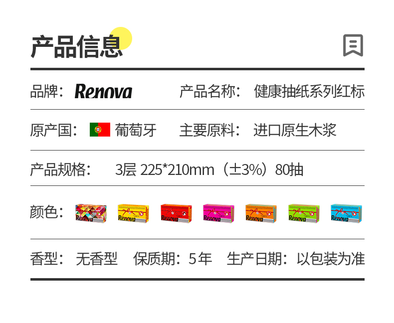 【已下架】积分换购 | 葡萄牙Renova 彩色抽纸混色四盒装 蓬松柔软 植物染料 不掉色 不掉纸屑[福利品]