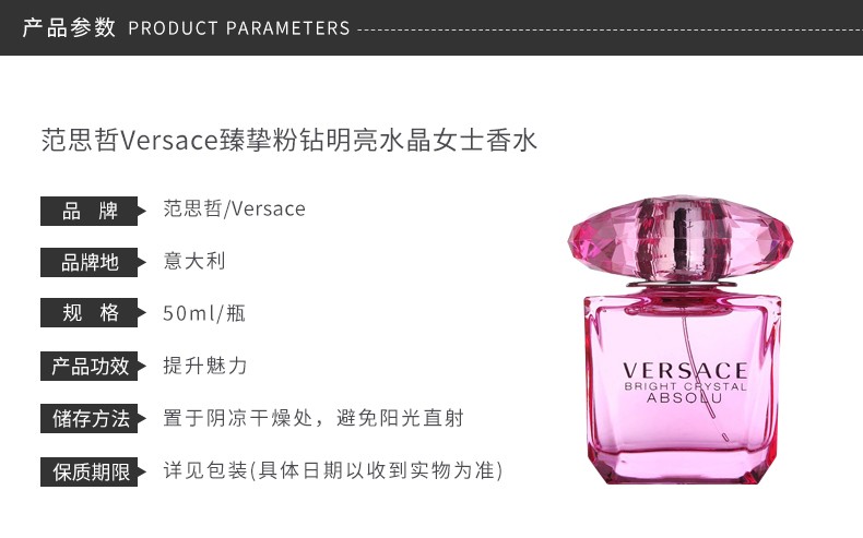 意大利 VERSACE 范思哲 臻挚粉钻明亮水晶女士香水 30ML